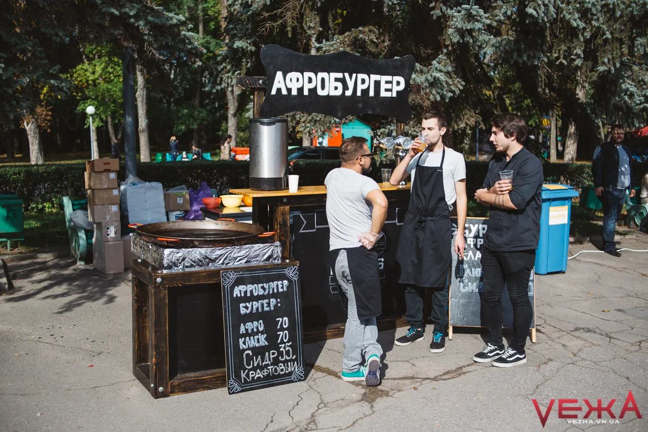 Наразі по центральній парковій алеї, біля літнього театру та навколо головного водограю вже встановлені фуд-корти: численні ятки з їжею та напоями як від вінницьких барів та ресторанів, та і представників смачного бізнесу з усієї країни.
