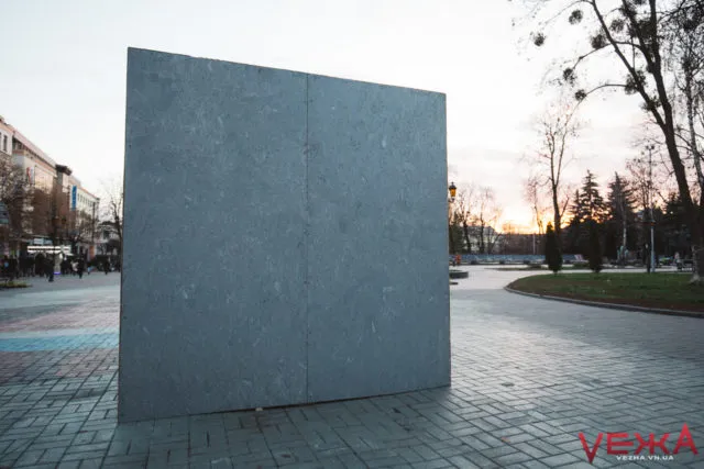 Автора проекту – художника Олега Усатюка ми саме застали за роботою: з волонтерами він саме завершував останні облаштування всередині куба.
