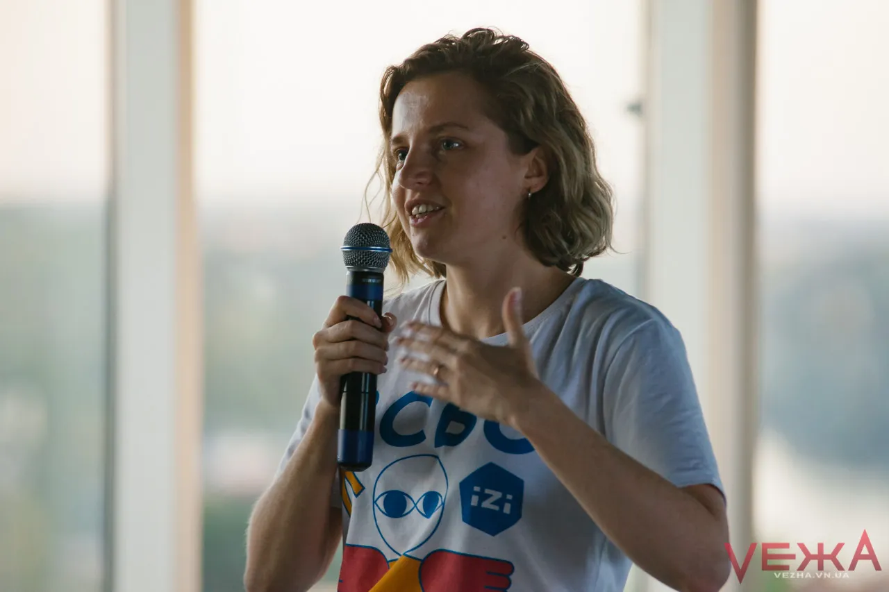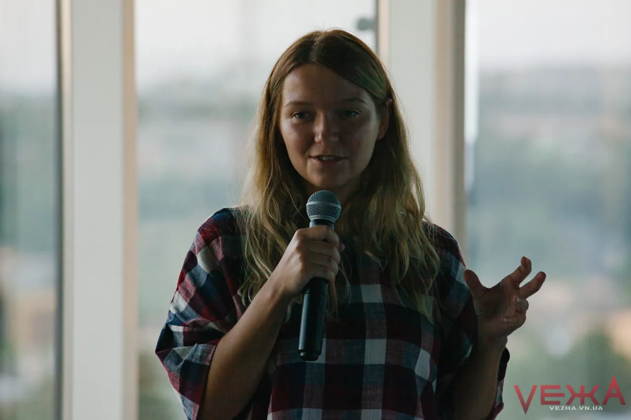 Прагматична мрійниця, яка любить подорожувати в екзотичні місця, на кшталт Куби чи Лапландії, а у перервах в офісі малює з колегами картини неба – першою на сцену вийшла Ольга Нестеренко. Вона розповіла про себе та власний щоденний чек-лист для роботи, здобутки агенції та безперервні пошуки креативу, а ще – чому таксисти краще за всіх розбираються у бренд-моделях та хто такі «маленькі клієнти з великими амбіціями і навпаки».