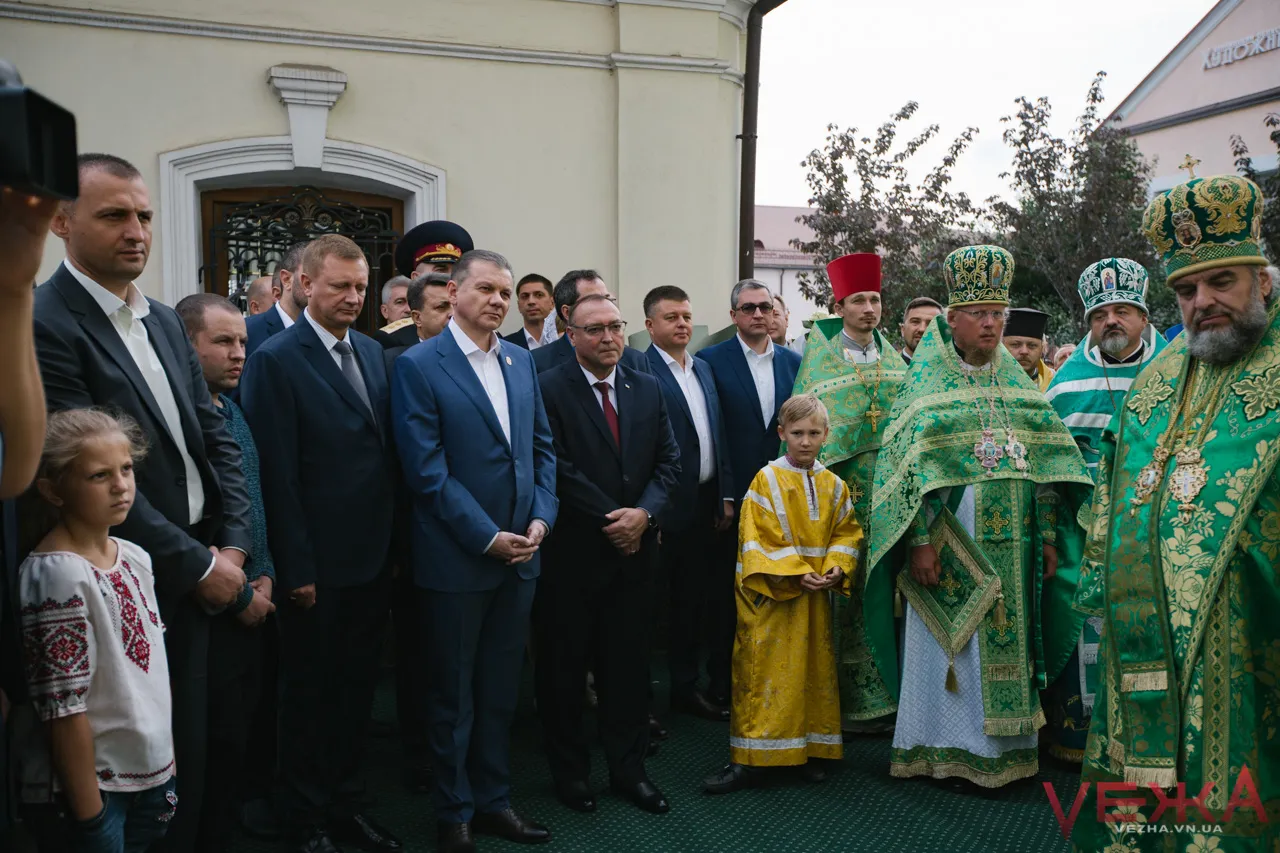Служба відбувалася не у храмі, а просто неба перед собором, у ній, крім численого духовенства також взяли участь голова Вінницької ОДА Валерій Коровій, мер міста Сергій Моргунов, голова обласної ради Анатолій Олійник, перший заступник міського голови Владислав Скальський та інші.