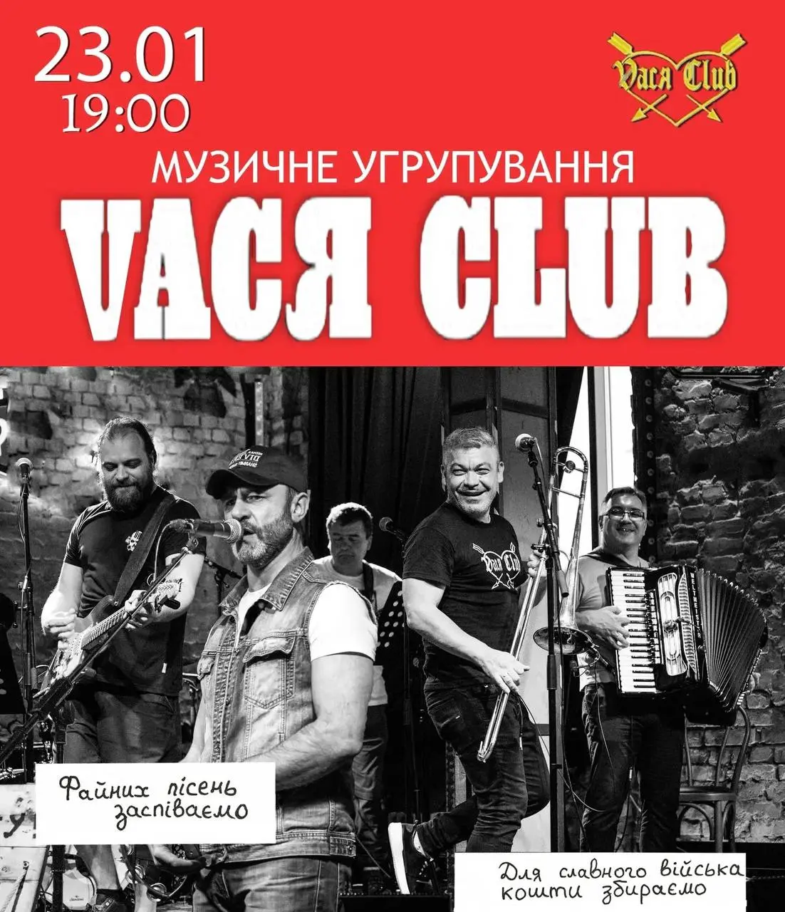 23 січня у Docker pub Vinnytsia вперше виступить гурт «VАСЯ ClUB». Гурт вже багато років виступає по всій Україні, також відомо, що вони збирають гроші для українського війська. Як зазначають організатори, кожен їх концерт – це живе спілкування зі сценою, танці, усмішки та пісні, які хочеться підспівувати разом.