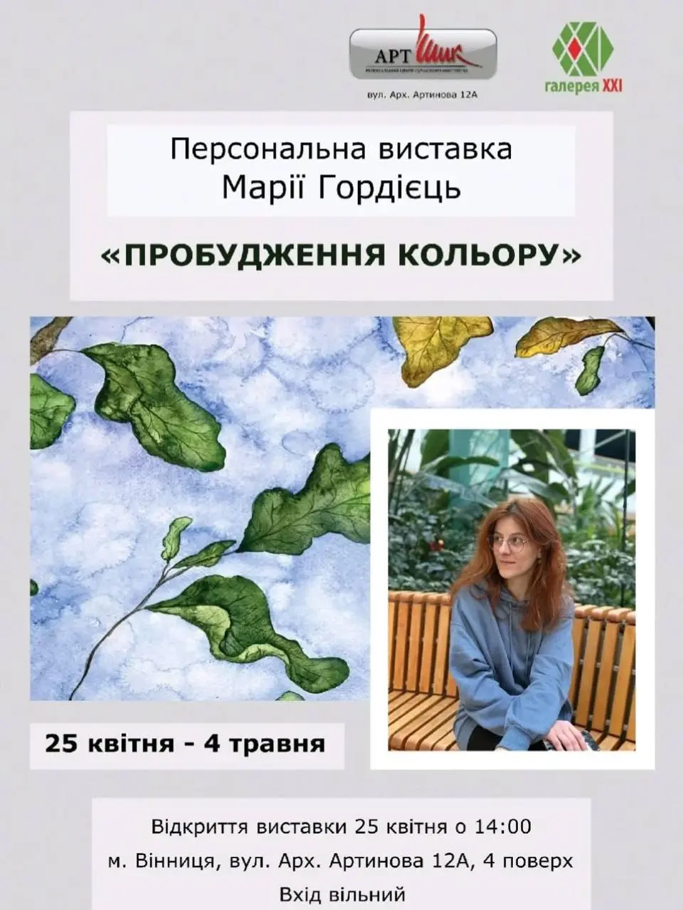 У культурному центрі «Галерея ХХІ» відбудеться відкриття персональної виставки Марії Гордієць – «Пробудження кольору». У закладі повідомляють, що в експозиції будуть представлені акварельні роботи, які передають дихання природи: від тендітного пробудження перших весняних квітів до насиченого золота осіннього листя.