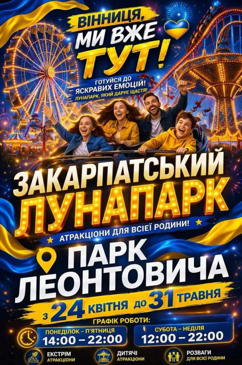 У центральному парку імені М. Леонтовича у пʼятницю, 24 квітня, відбудеться відкриття Закарпатського лунапарку.