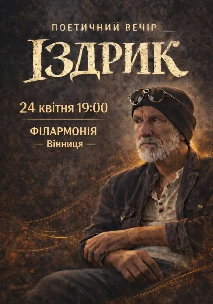 У Вінницькій обласній філармонії запрошують на поетичний вечір українського письменника, прозаїка, поета, художника, культуролога Юрія Іздрика. За інформацією з сайту «Вікіпедія», письменник є автором концептуального журнального проєкту «Четвер», а також лауреатом Національної премії України імені Тараса Шевченка 2025 року в номінації «Література» за свою поетичну збірку «Колекція».