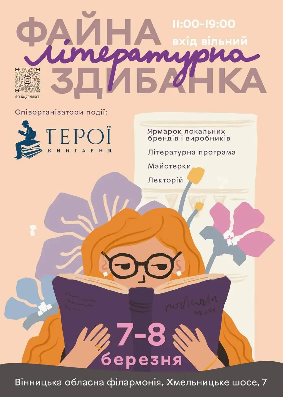 У Вінниці відбудеться перша літературна Здибанка. У програмі заходу – ярмарок локальних брендів і виробників з усієї України, дводенна літературна програма із запрошеними українськими авторами й авторками та видавництвами, а також багато іншого.