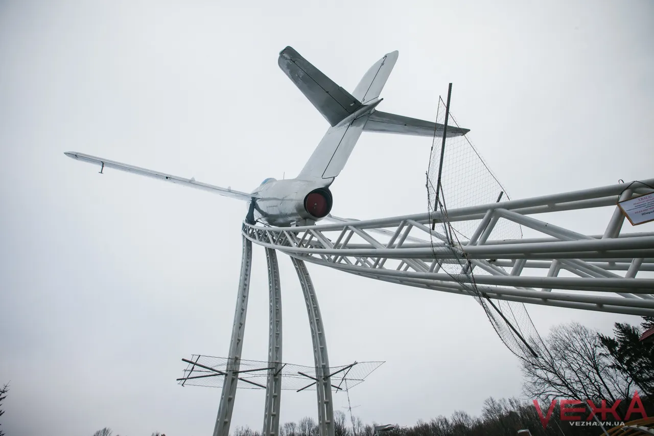 Тепер, аби екстремали не пробували вилізти на постамент, в окремих місцях робітники натягнули сітку. Щоправда, її встановили тимчасово, адже наступного року постамент мають додатково обшити і тоді дістатись до літака буде неможливо.