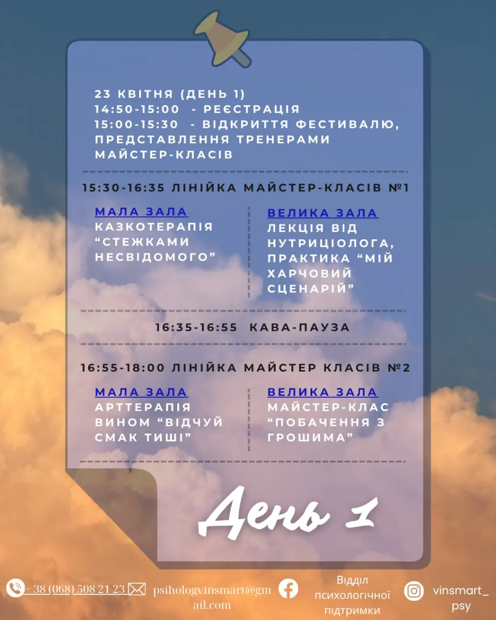У Вінниці 23-24 квітня, до Дня психолога, відбудеться серія заходів «Майстерня гармонії».