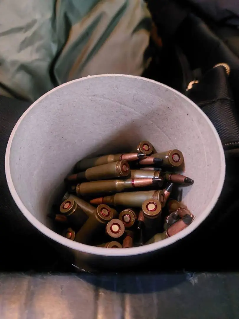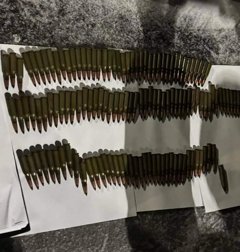 Зокрема, в багажному відсіку автомобіля, під особистими речами, у коробці з-під елітного алкогольного напою знаходилися 140 предметів, схожих на бойові набої калібру 5,45×39 мм, а також один предмет, схожий на бойовий набій калібру 9×39 мм.