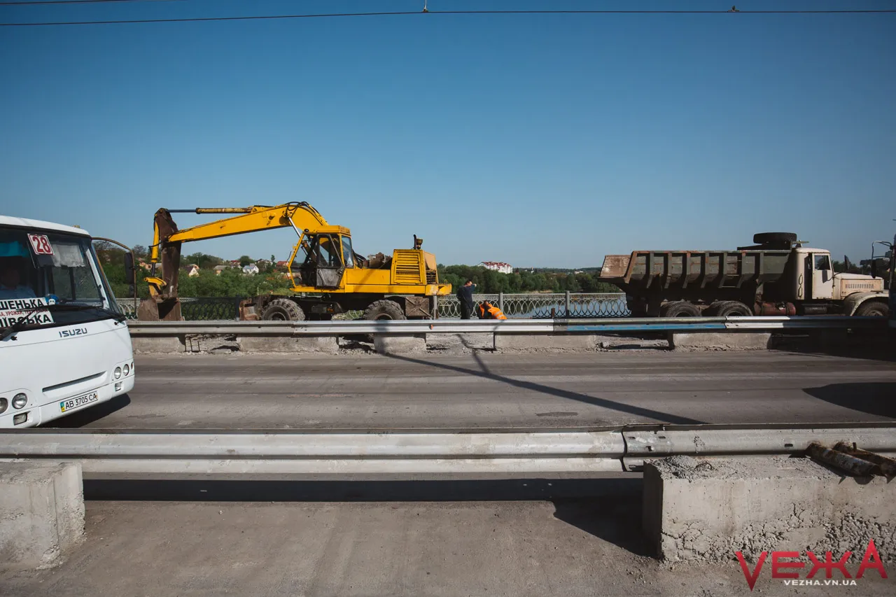 Днями Київському мосту у Вінниці розширили пішохідну зону в рамках реконструкції усієї мостової споруди. Згідно з планами, оголошеними раніше, відтепер пішохідна доріжка на мосту складатиме понад два метри – раніше тротуар був завширшки всього 160 сантиметрів згідно з попередніми нормативами.