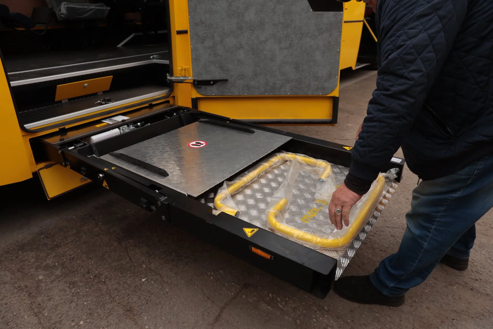 Автобуси інклюзивні. Вони обладнані підйомниками та спеціальними місцями для дітей, які пересуваються на кріслах колісних.