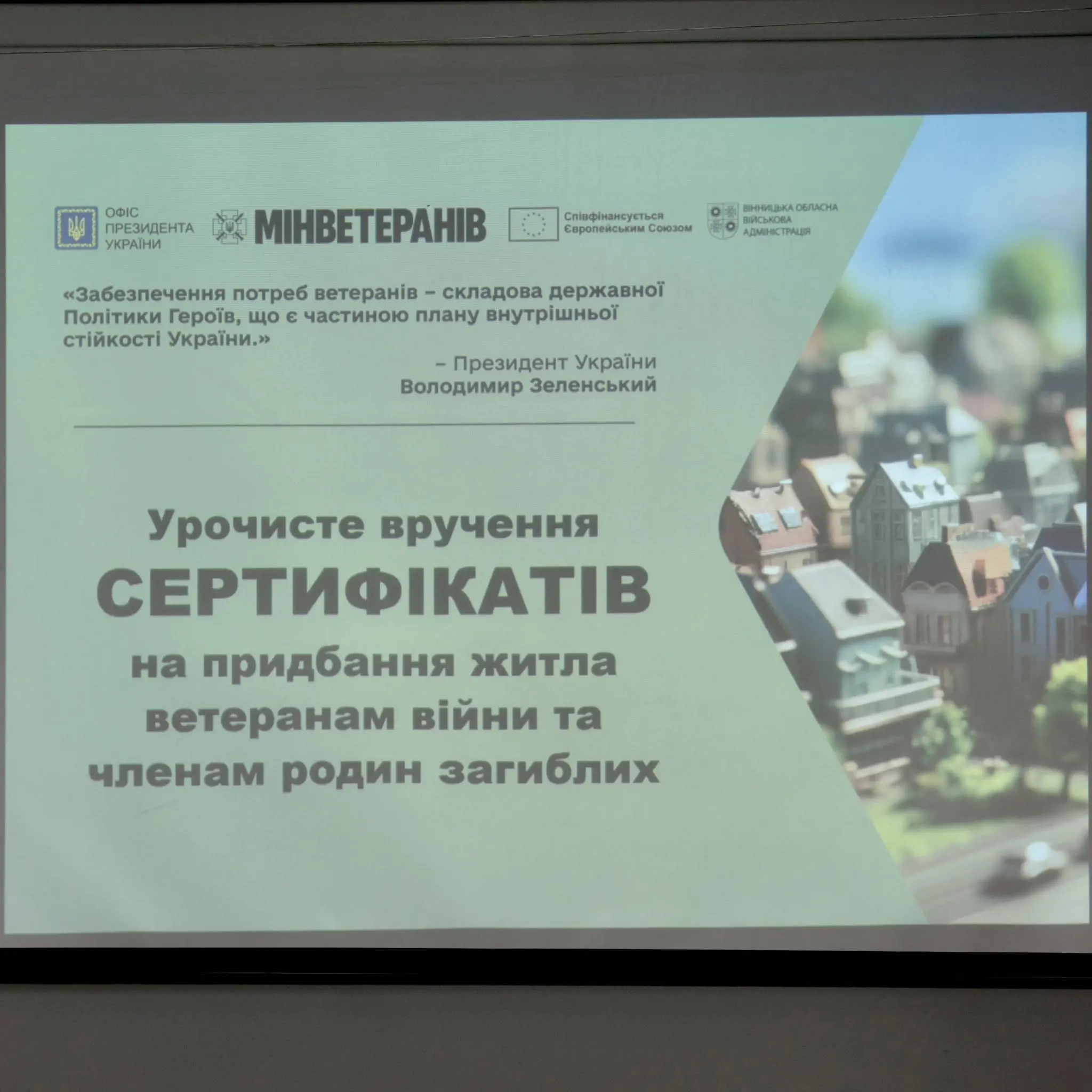 Вручення сертифікатів стало можливим завдяки Президенту України Володимир Зеленський, Кабінету Міністрів України, Мінветеранів та фінансовій підтримці Європейського Союзу в межах інструменту Ukraine Facility.