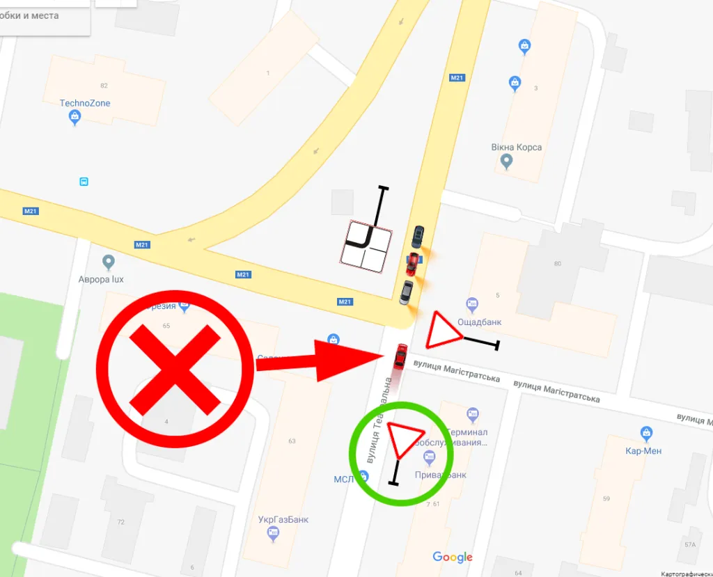 – Цей знак масово ігнорується (або він непомітний, так, як встановлений задалеко до повороту і збоку в деревах) і створюється конфлікт з тими, хто хоче повернути на Магістратську в сторону лікарні після Київського мосту, – написав Євгеній Тодчук. – Це може призвести до аварій, особливо за участю гостей міста, що не звикли до «Народних правил проїзду». Прошу встановити додатковий знак, або перенести старий на виїзді з Театральної. Така проста дія зможе в подальшому знизити напругу на даному перехресті.