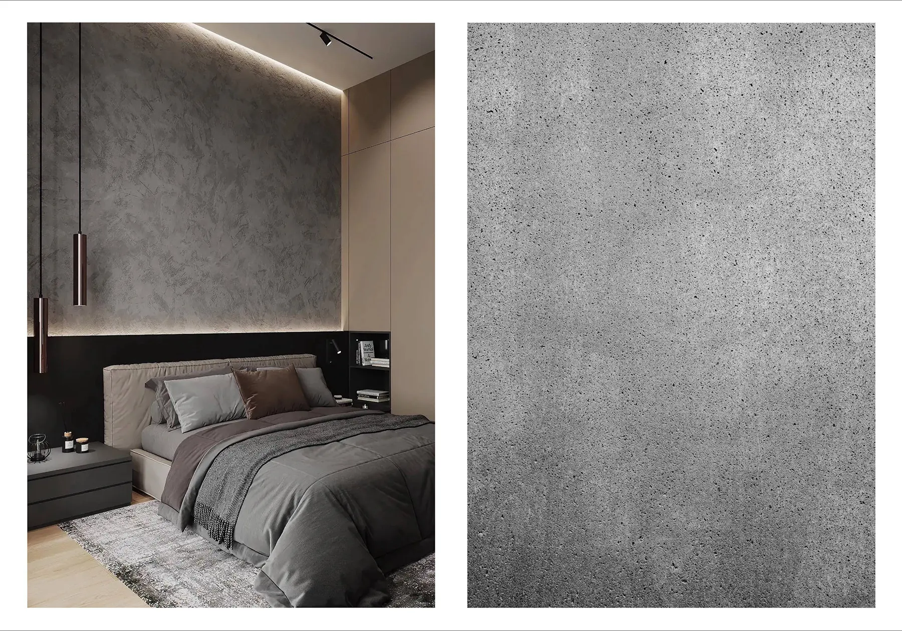 Декоративна штукатурка під бетон топове покриття для стін в стилі Лофт, мінімалізм. Сіра структура доречна в студіях та квартирах в індустріального забарвлення. Вапняна основа Marmorino CONCRETE відрізняється стійкістю та паропроникністю.