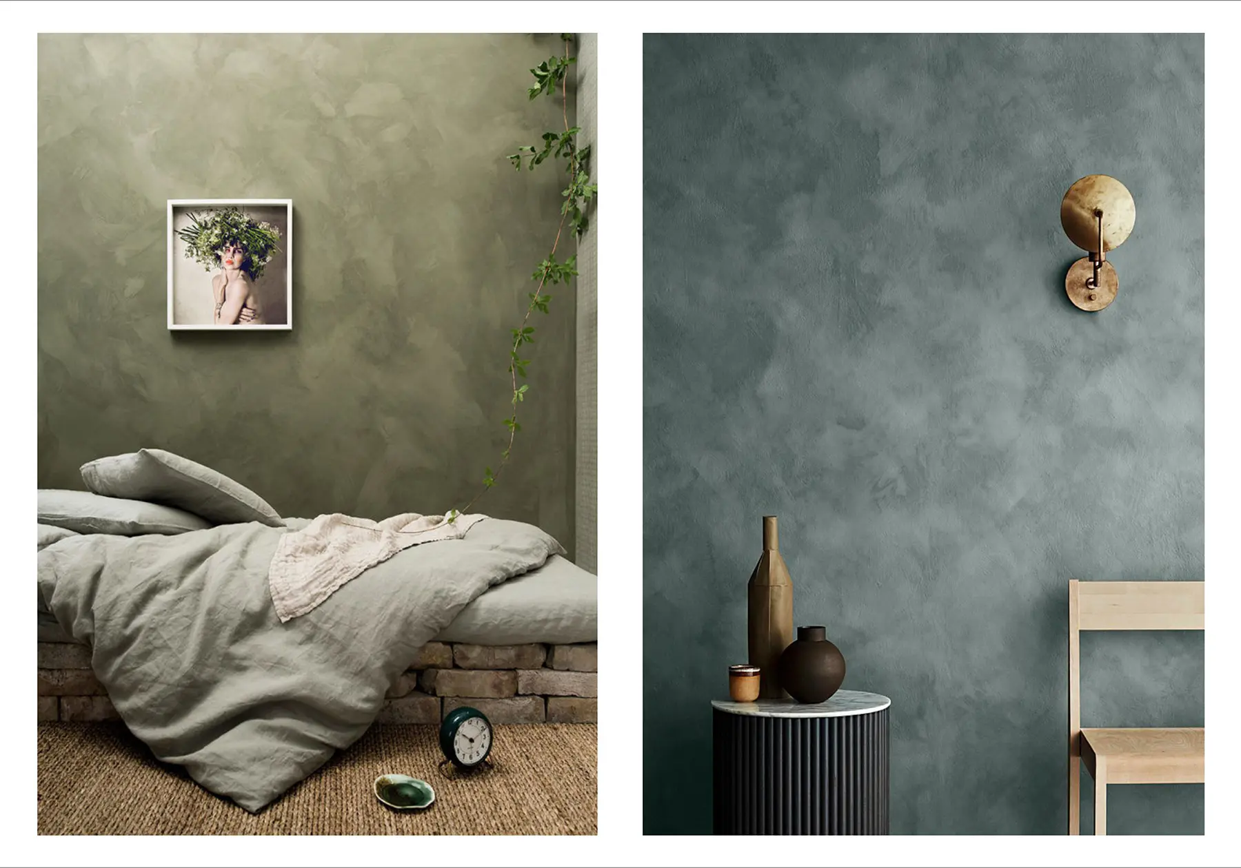 Всі декоративні покриття тонуються у більше ніж 600 відтінків універсальними барвниками по колірній карті. Величезна кількість варіантів фактури та текстури можна отримати завдяки різним техніками нанесення.