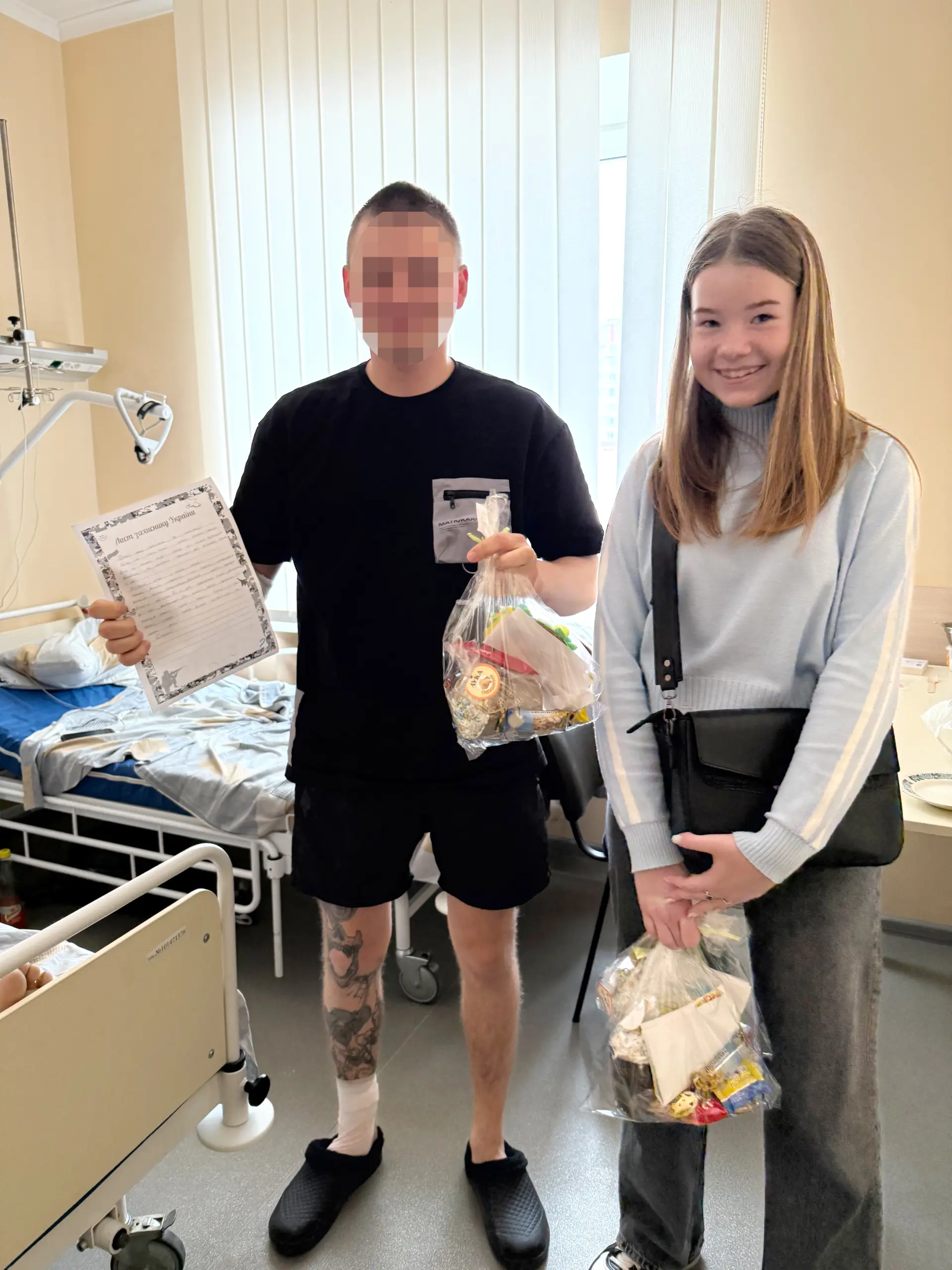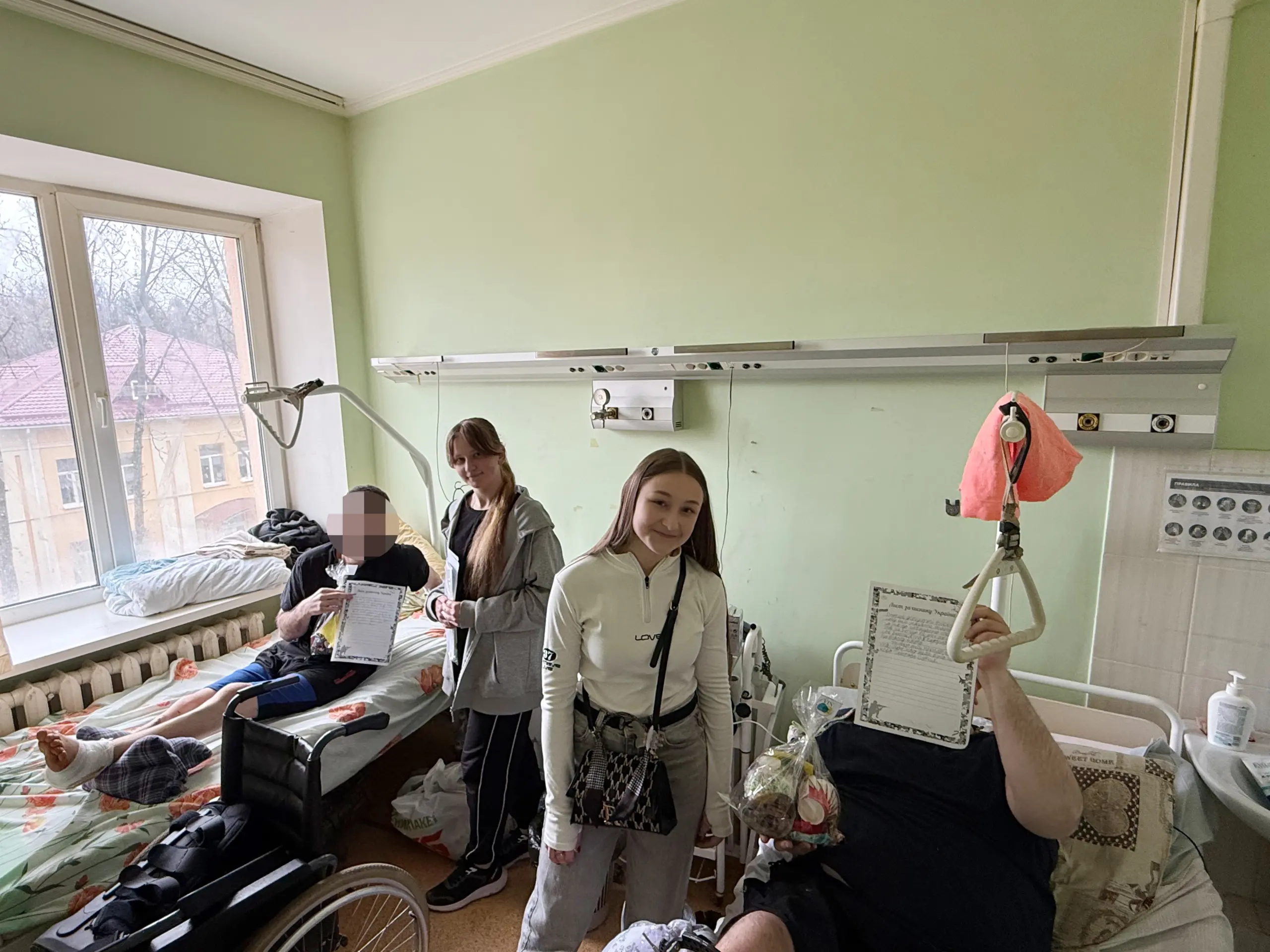 В медзакладах волонтерів коридорами відділень супроводжують медики. З дозволу пацієнтів вони заходять до палат. Там військові з різними травмами. Хтось зустрічає дітей лежачи, а хтось поволі сідає на ліжку, щоб узяти пакунок і подякувати. А хтось, попри біль і втому, все ж підіймається назустріч, щоб потиснути руку чи обійняти.
