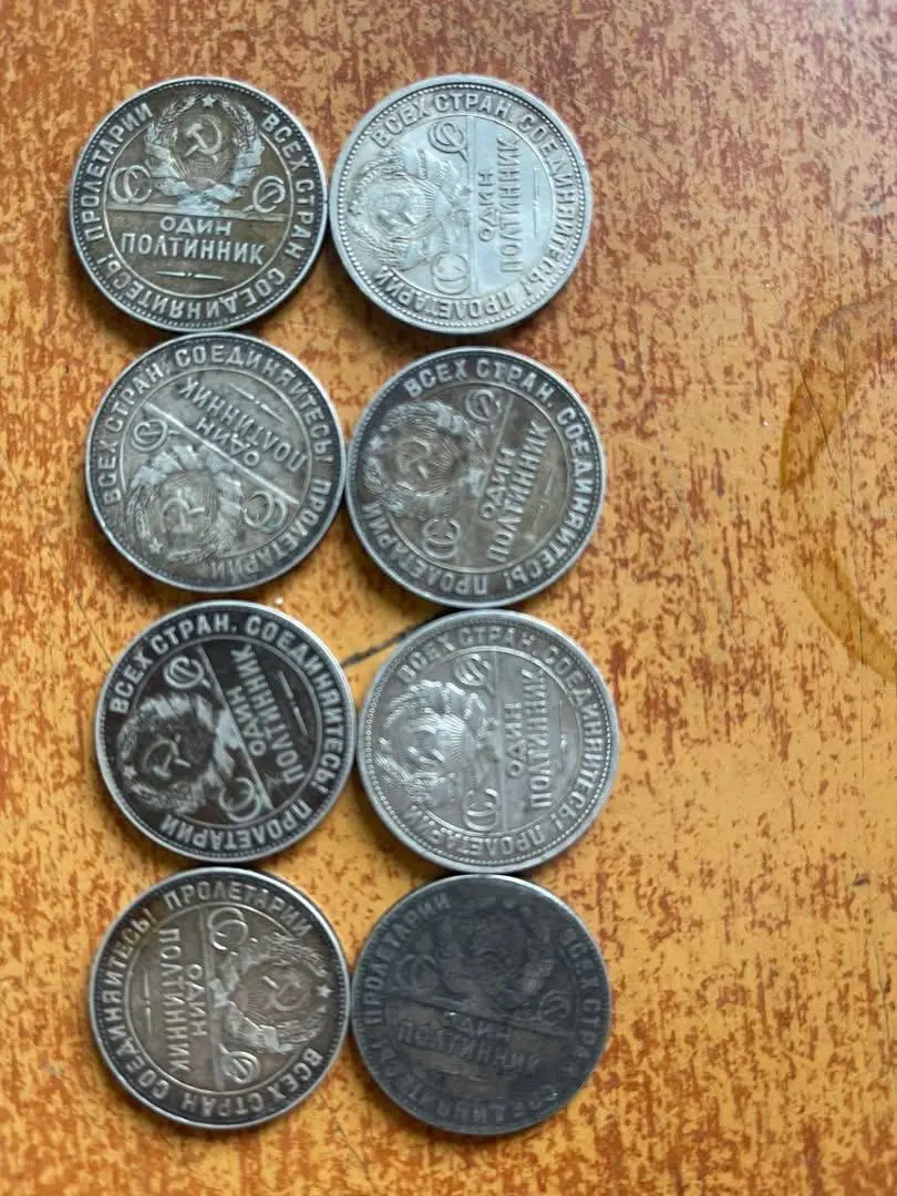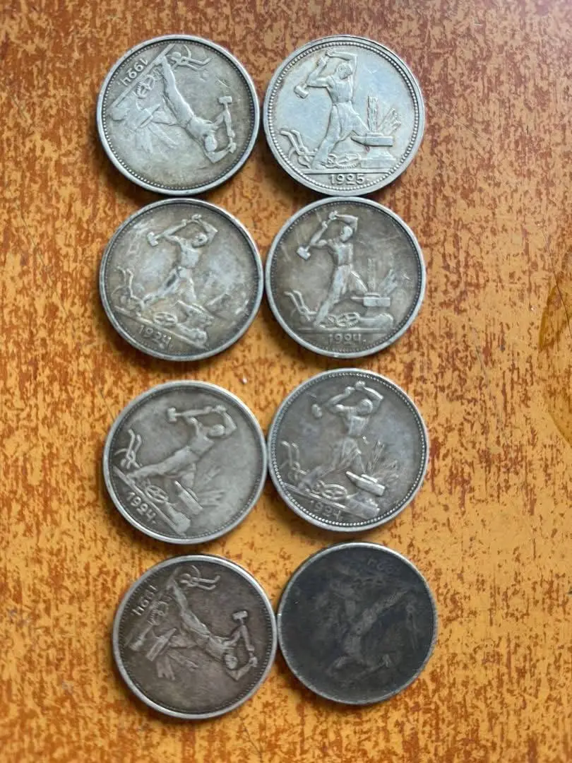 – срібні монети номіналом 50 копійок, викарбувані у 1924 році у кількості 7 шт.;