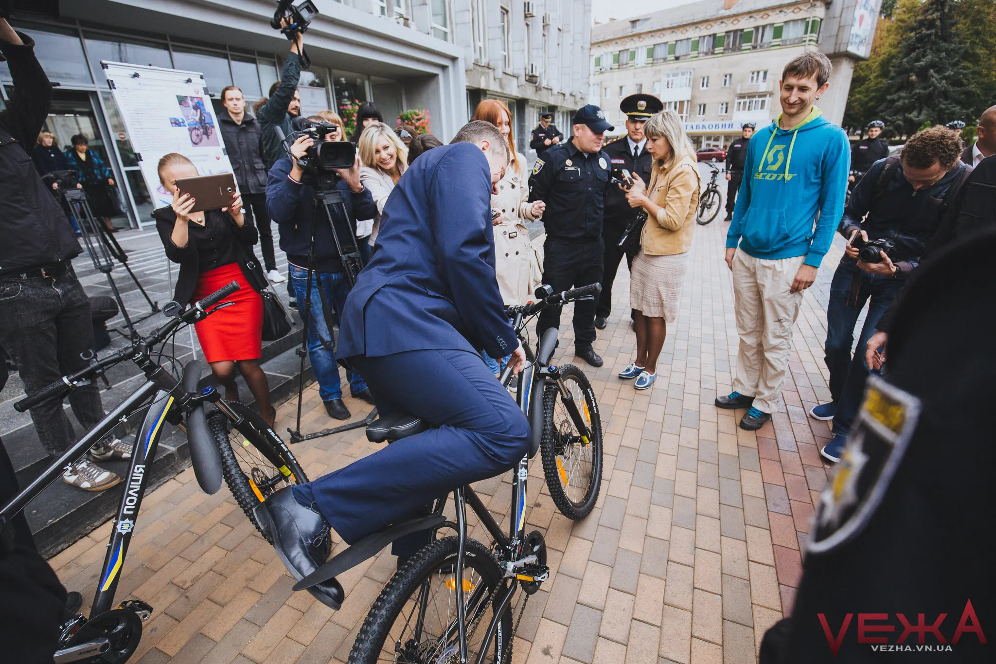 8. Міський голова Сергій Моргунов випробовує велосипед, куплений для Національної поліції. 20 вересня