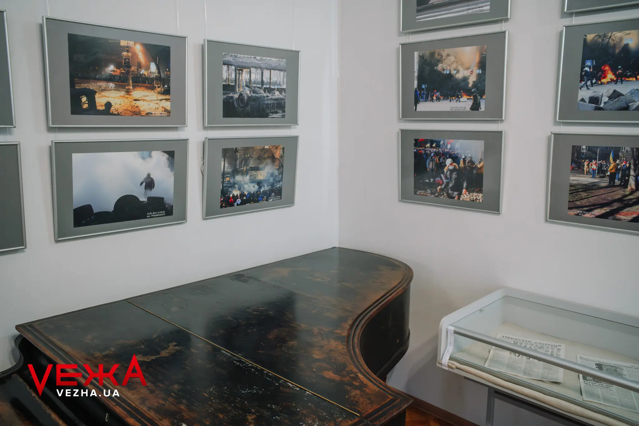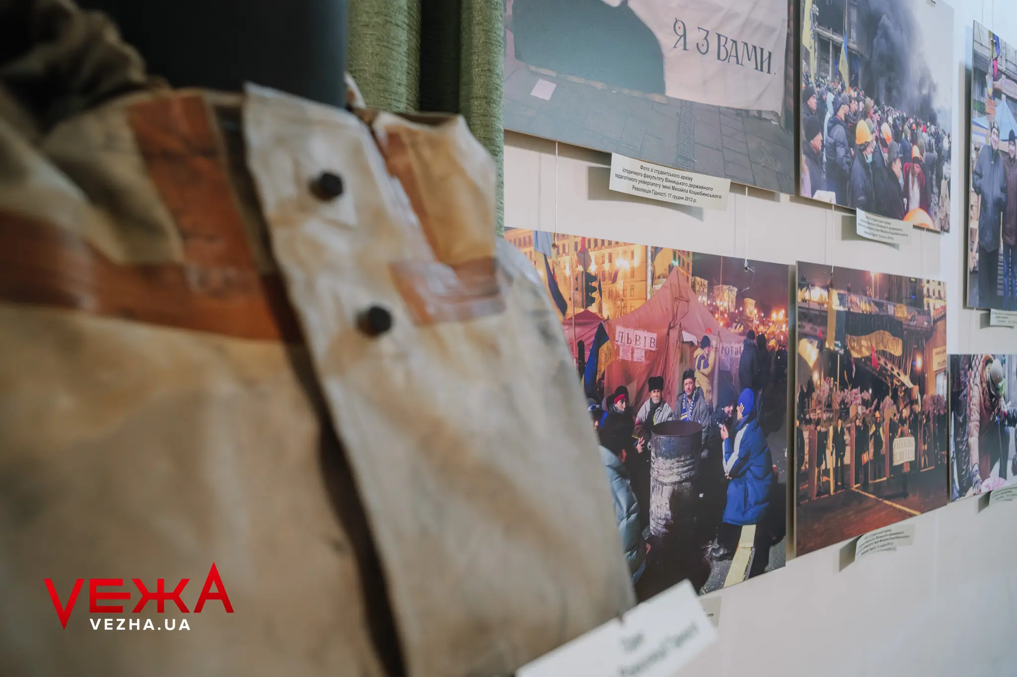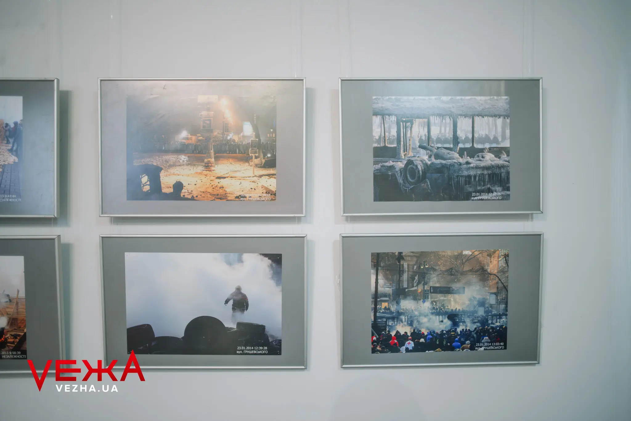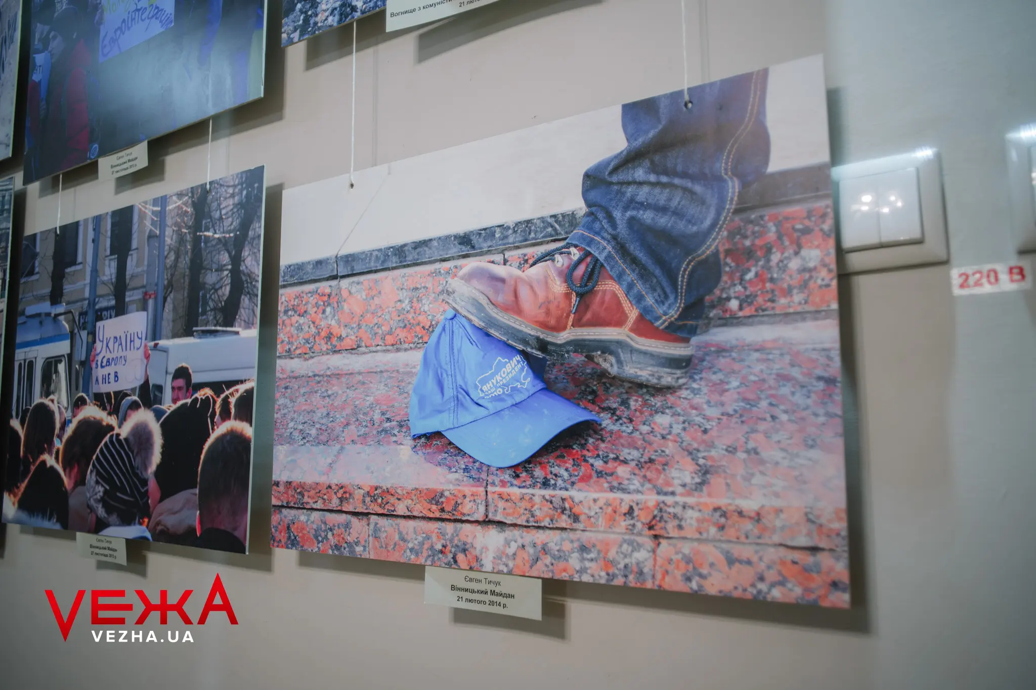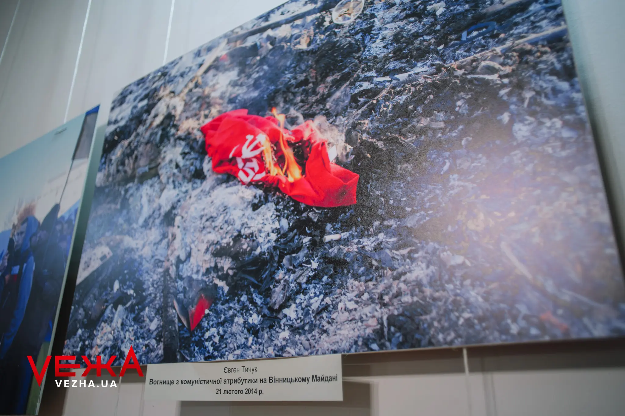 На експозиції представлено близько 50 світлин, зроблених у найзапекліші моменти Революції гідності. На світлинах – волонтери, військові, звичайні українці, які у 2013 – 2014 роках вийшли на Майдан, щоб відстояти право на свободу і власну гідність. Також на виставці є частина експозиції, яка присвячена вінницькому Майдану зі світлинами героїв нашого міста.