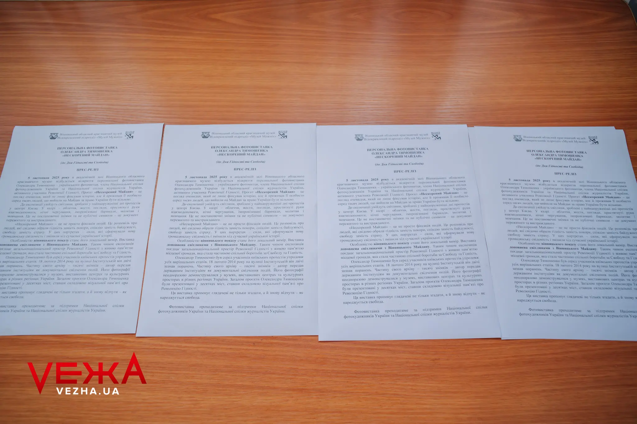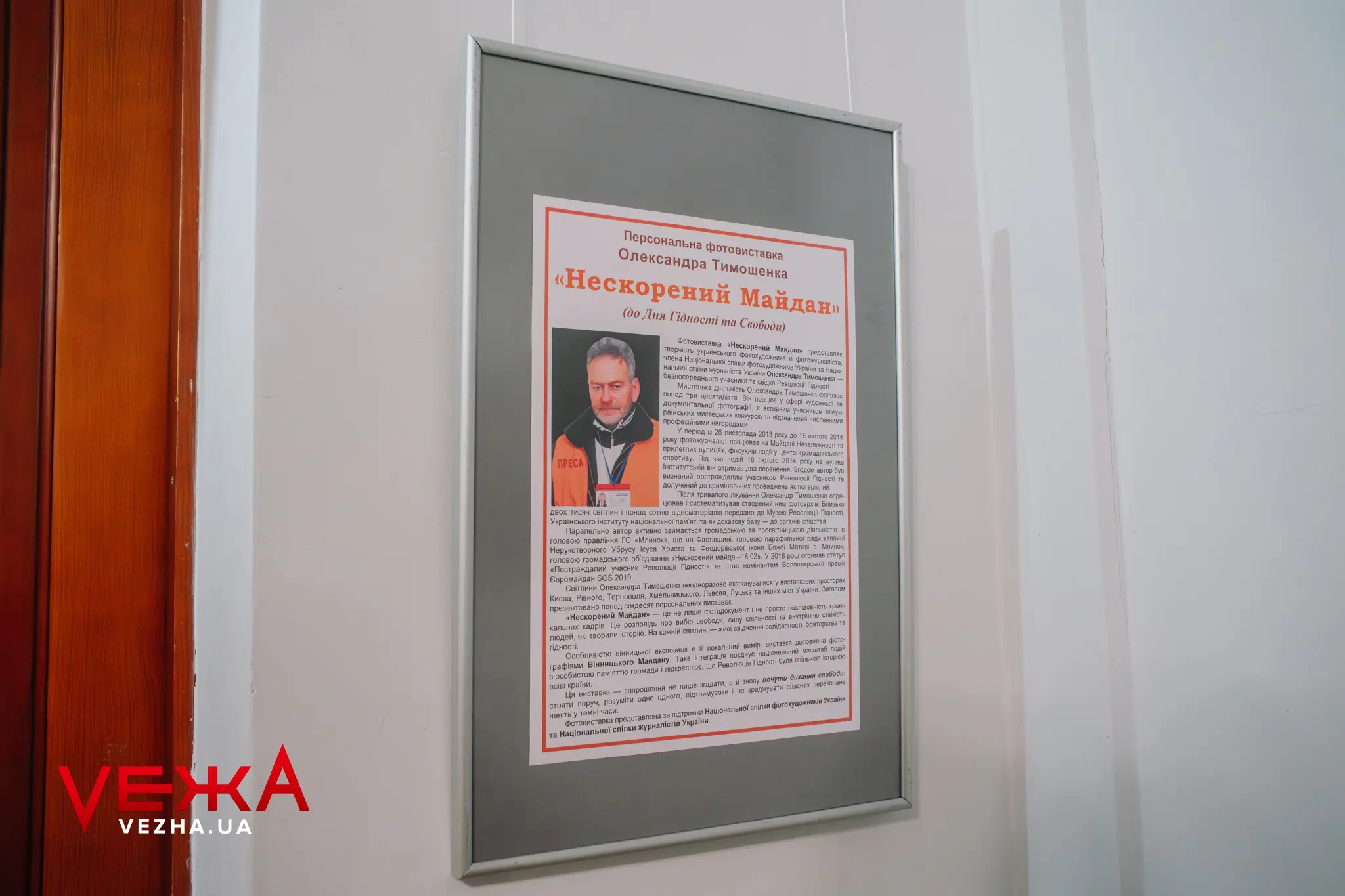5 листопада у виставковій залі Вінницького обласного краєзнавчого музею відбулося відкриття персональної виставки фотожурналіста та фотохудожника Олександра Тимошенка «Нескорений Майдан».
