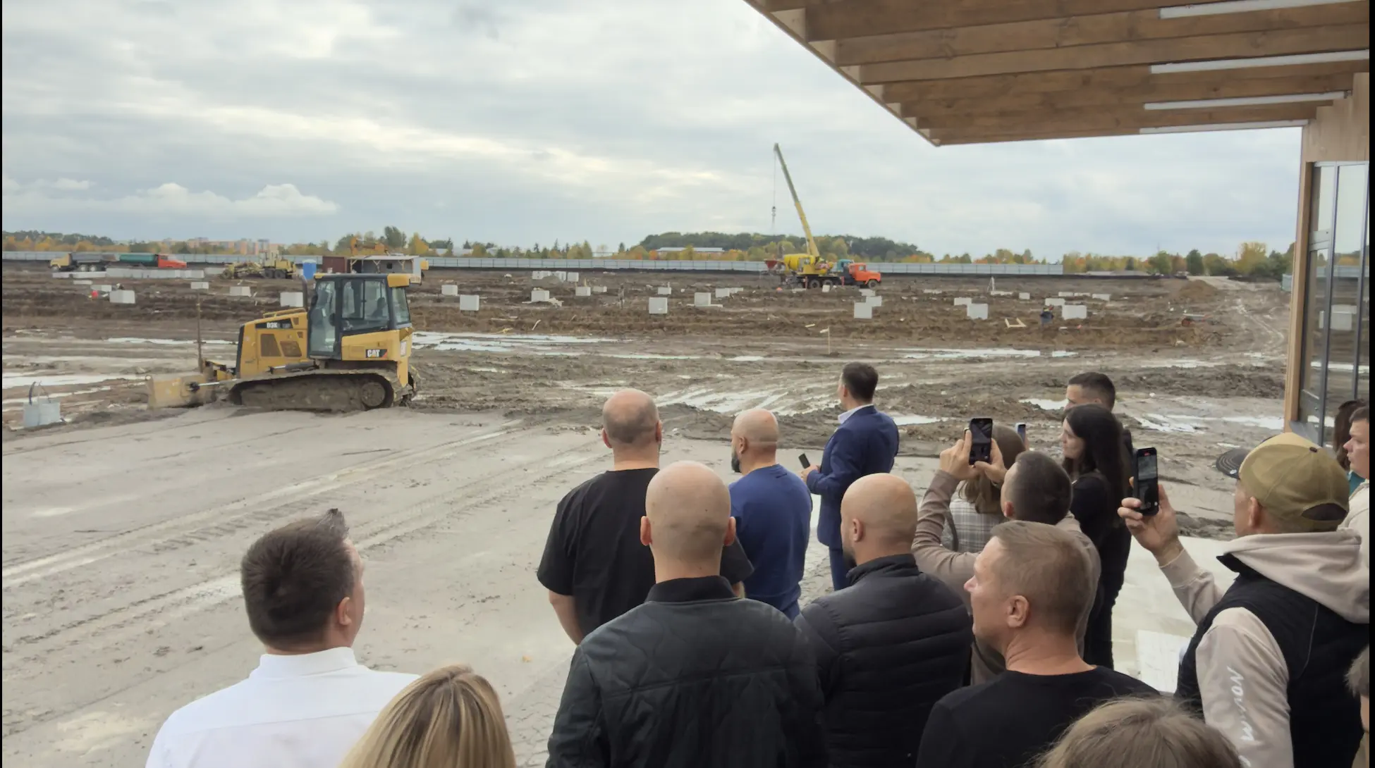 Знайомство з командою девелопера відбулося безпосередньо на майданчику будівництва. Учасники змогли побачити підготовку території під перші виробничі блоки, дізнатися про етапи вводів та формати участі резидентів — купівля, оренда або будівництво «під ключ» із супроводом девелопера.