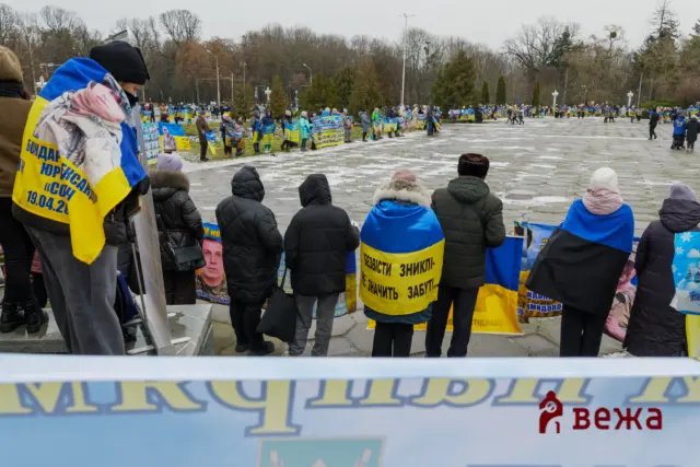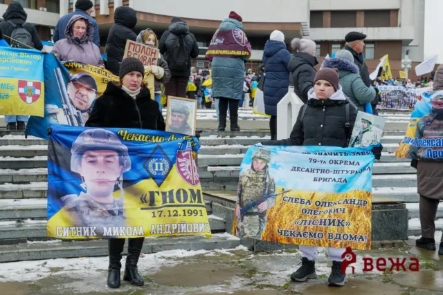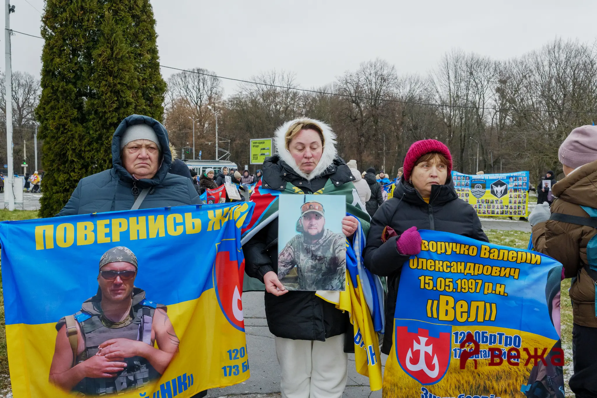 Так, на захід прийшли рідні та близькі воїнів низки бригад. З собою вони принесли прапори та фото тих, про кого очікують звісток та на кого досі чекають вдома.