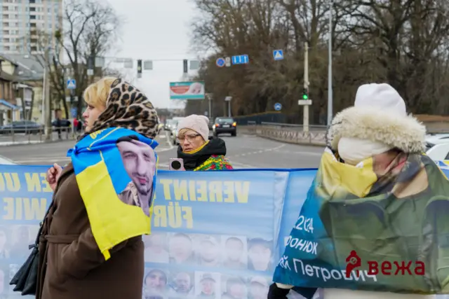 Під час заходу розгорнули величезний прапор. Як пише Суспільне, це прапор із майже шістьма тисячами фотографій українських військових, які зараз у полоні або вважаються зниклими безвісти. Люди вишикувались з ним вздовж дороги.