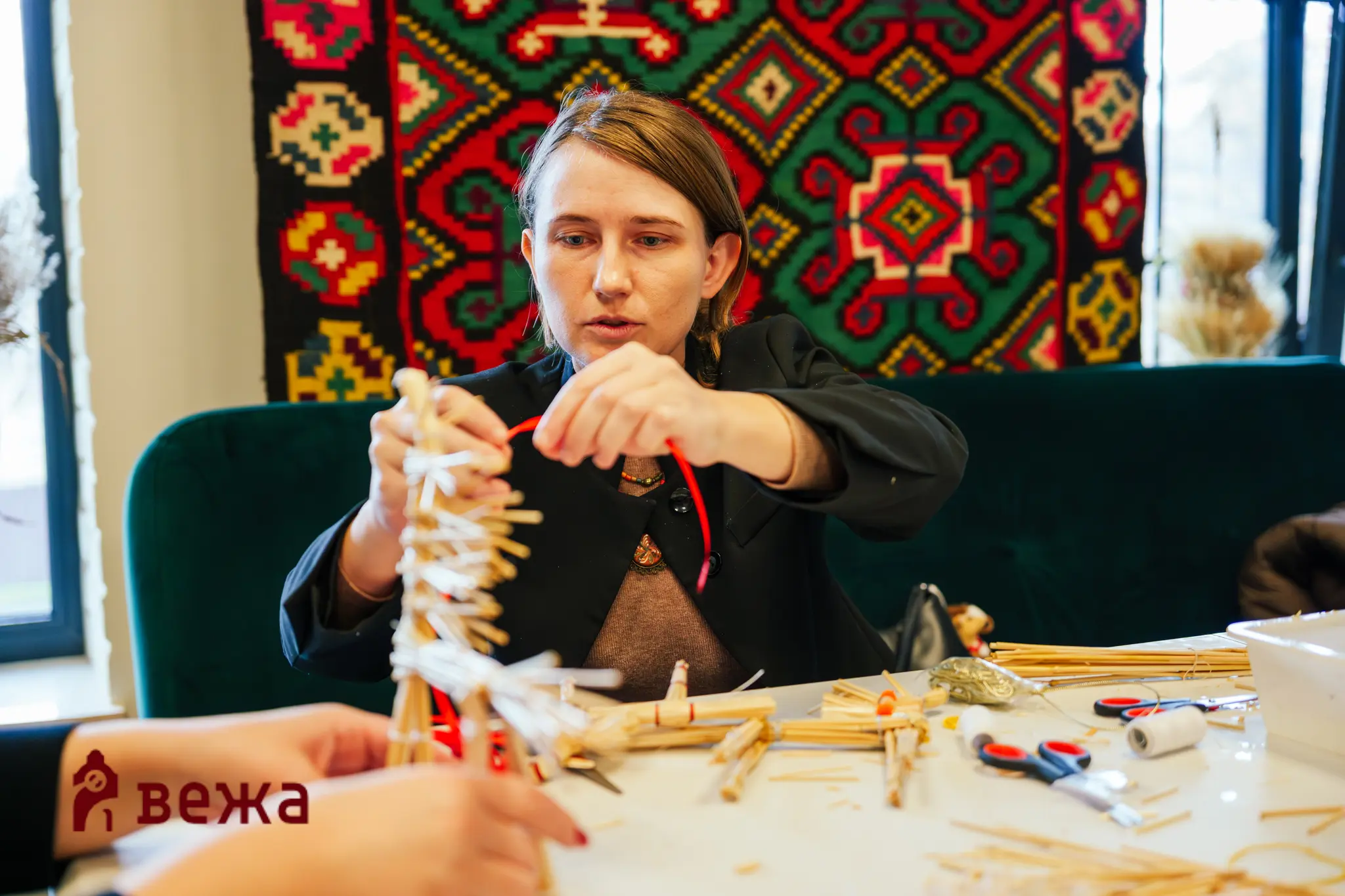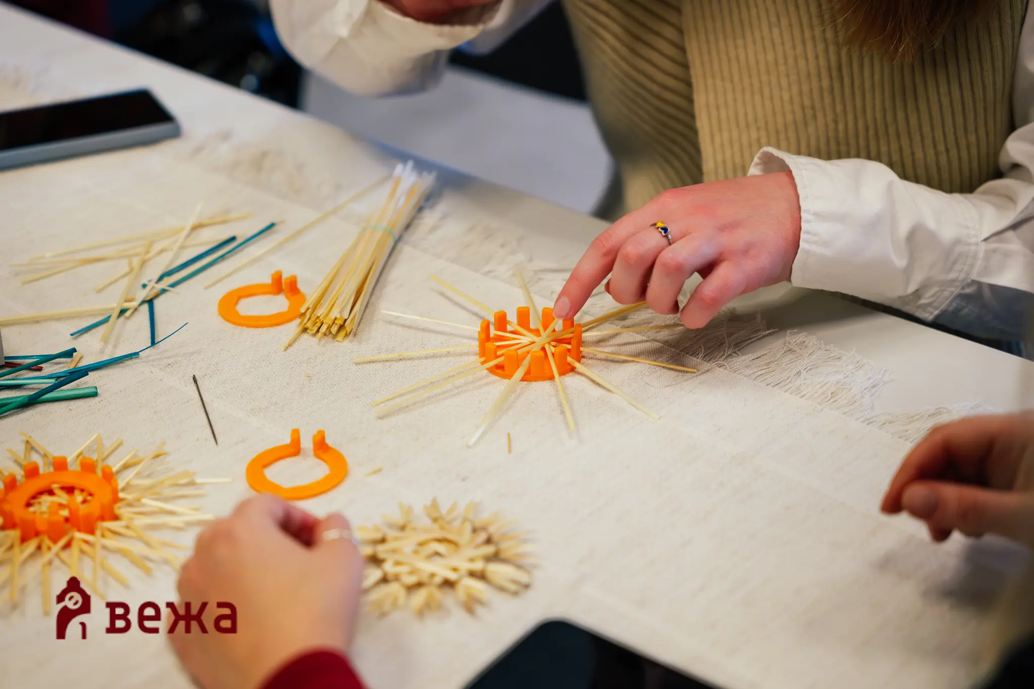 На другій локації — в «ЕтноЧарах» на Магістратській, 52 — тривали майстерки й тематичні зустрічі. Для участі потрібно було зареєструватись: охочі вчились плести маскувальні сітки, спілкувалися та слухали запрошених спікерів.