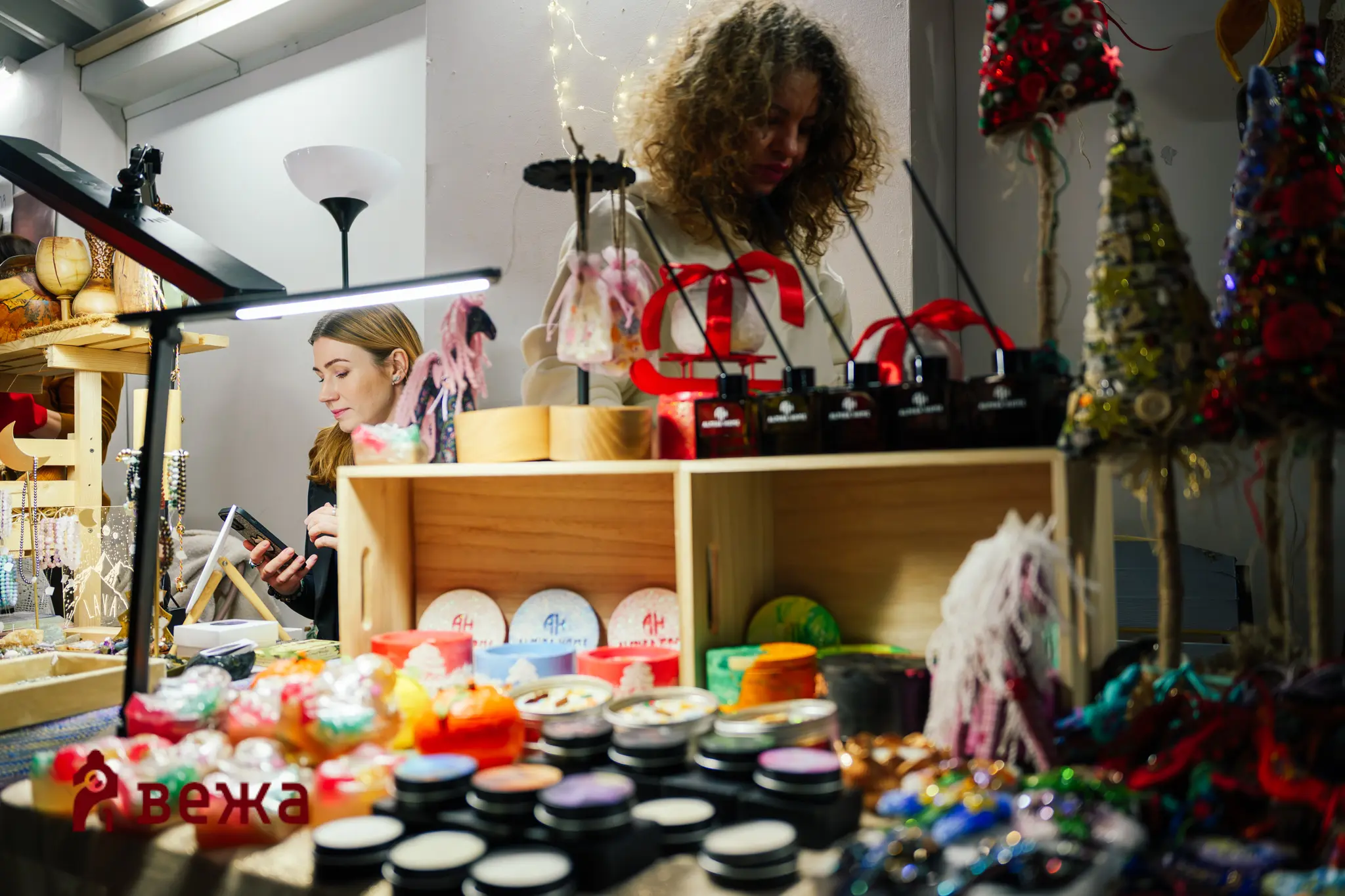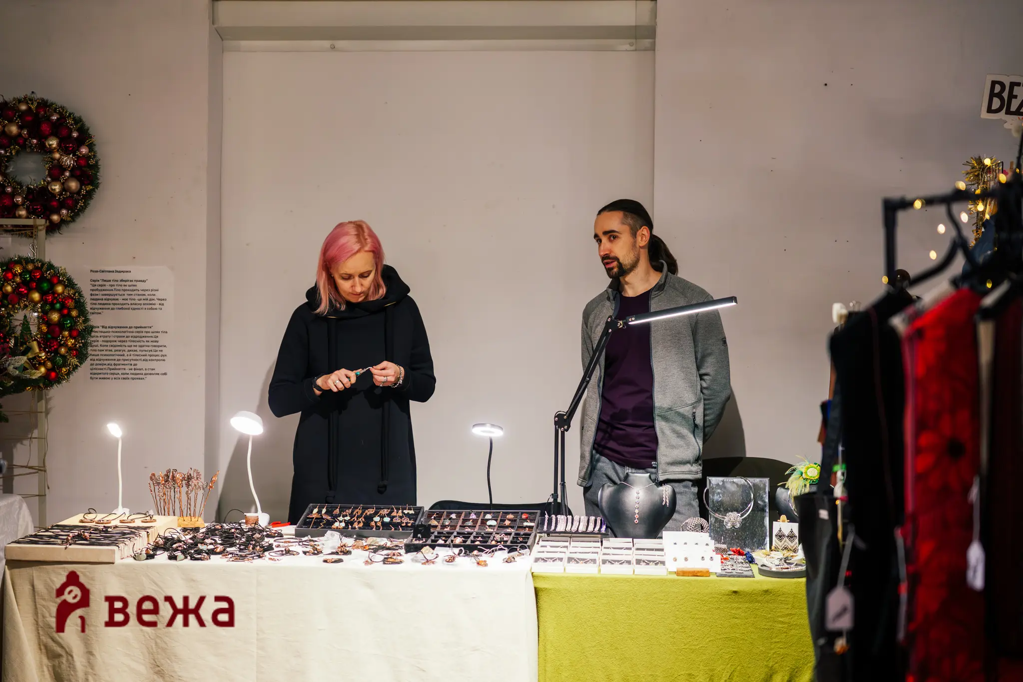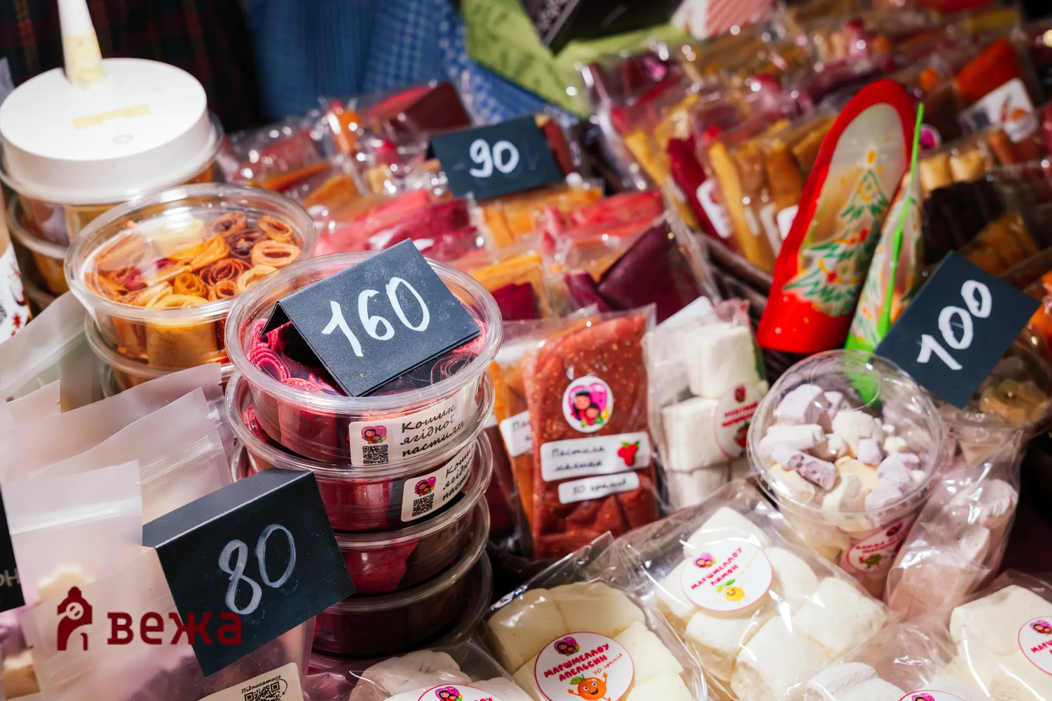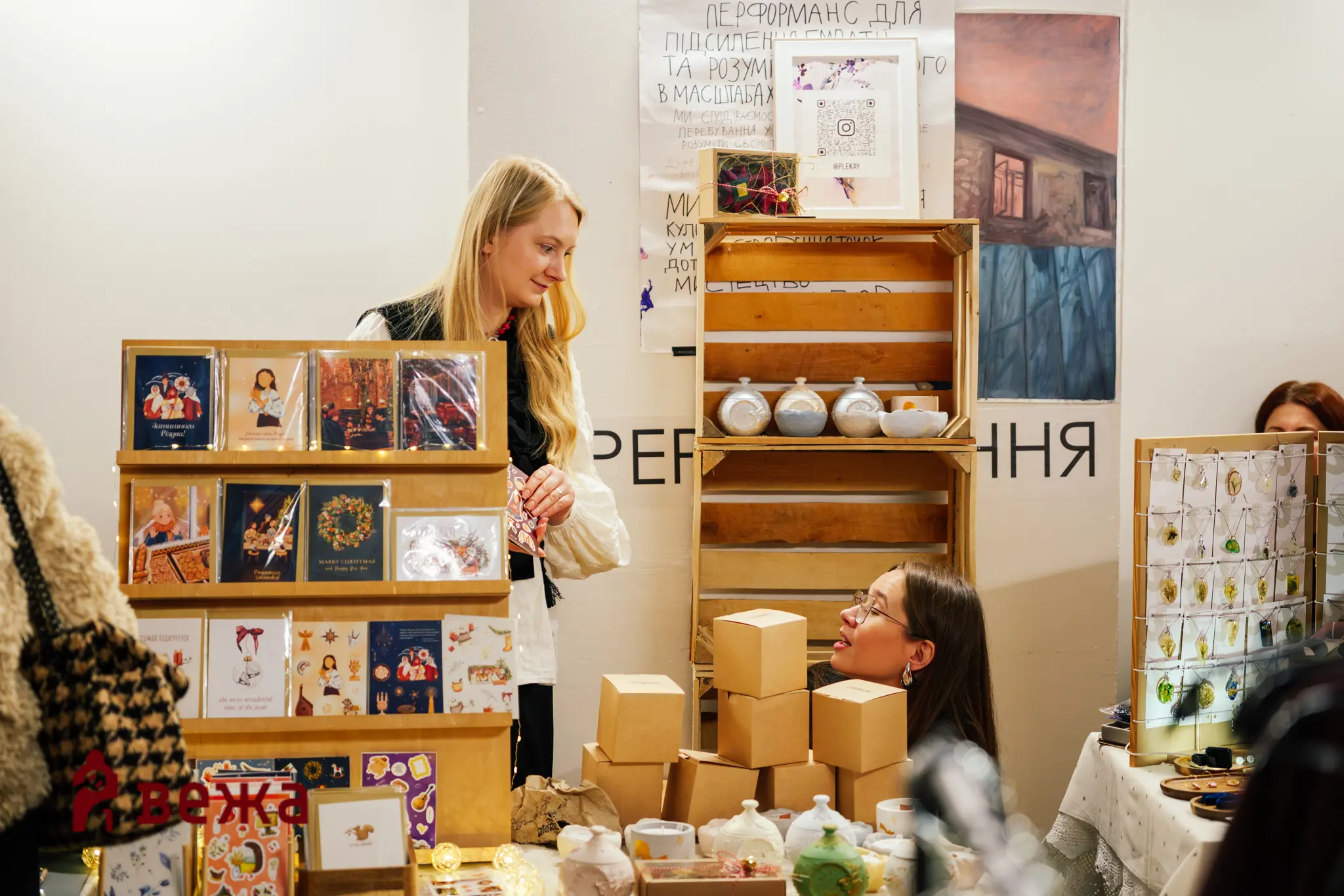 У залі MŌNTAЖу було чимало речей від різних брендів: відвідувачі могли придбати хенд-мейд іграшки, сувеніри, солодощі, гострі соуси, прикраси, парфуми та багато іншого. Люди купували подарунки, зустрічали друзів у натовпі, фотографувалися біля інсталяції та ділилися враженнями.