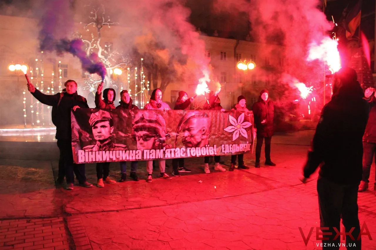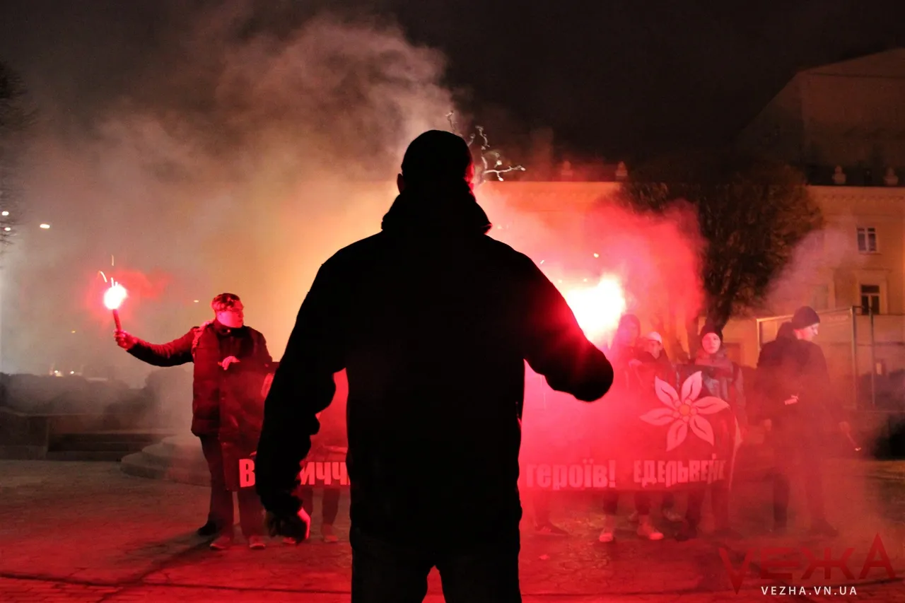 Наостанок учасники акції розгорнули великий банер з написом “Вінниччина пам’ятає героїв!” і запалили фаєри.