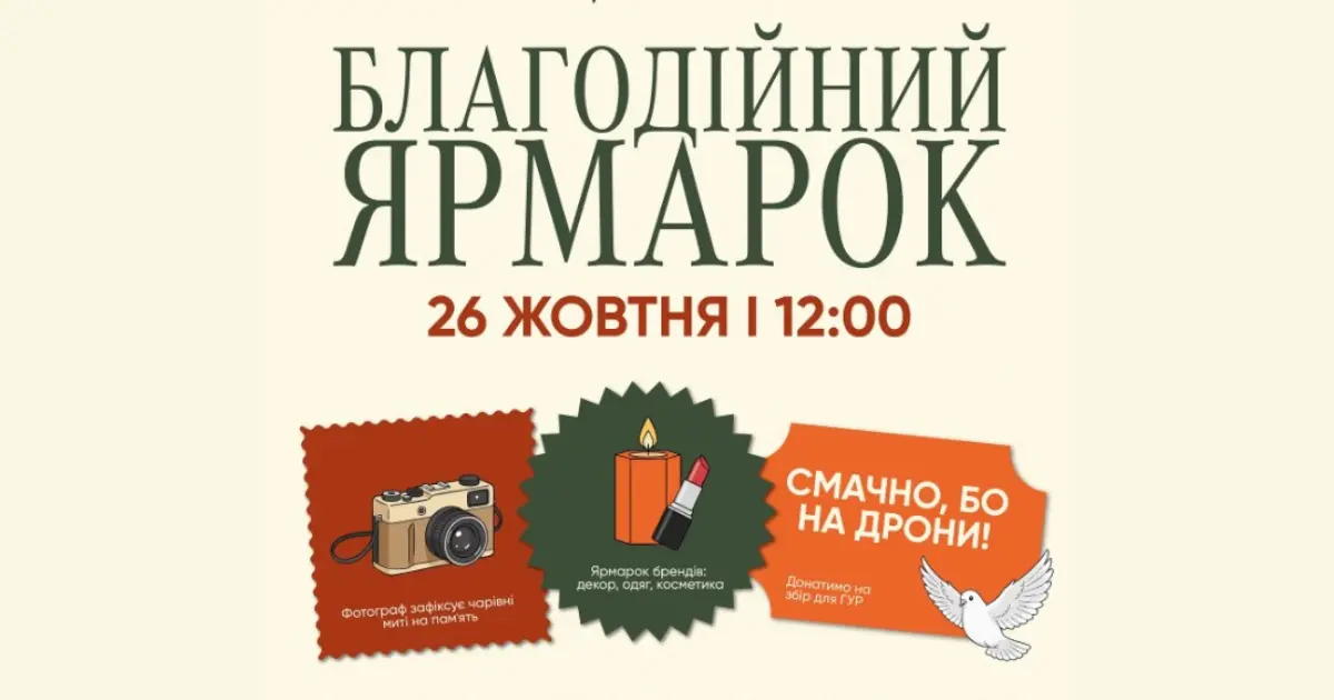 У Вінниці 26 жовтня відбудеться благодійний ярмарок у ресторані Clover. Частину коштів з ярмарку направлять до збору «Смачно, бо на дрони» на потреби ГУР.