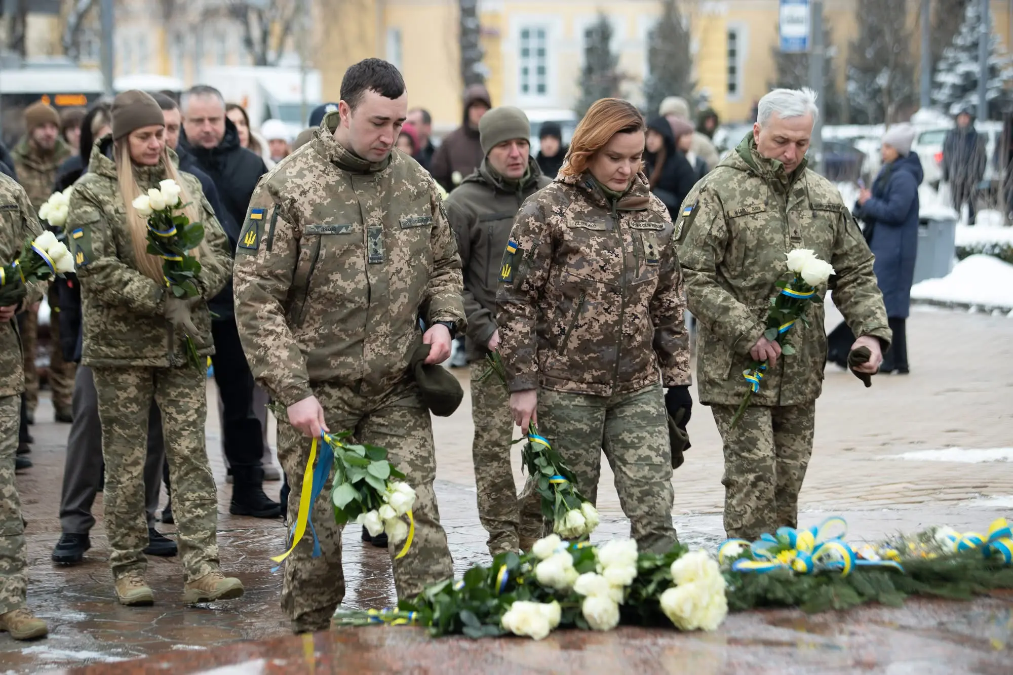 Участь у покладанні взяли родина Максима Шимка, який загинув на Майдані, військові, керівники області й міста, депутати обласної та міської рад, працівники виконавчого апарату обласної Ради, правоохоронці, громадськість.