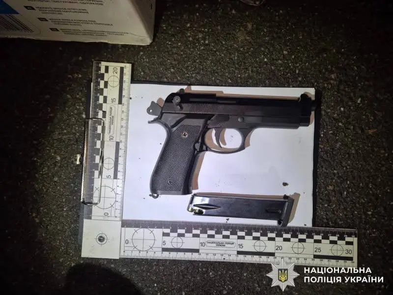 Під час затримання спецпризначенцями КОРД чоловік намагався позбутися знаряддя злочинів – стартового пістолета Retay, який він викинув з балкона. Поліцейські знайшли пістолет біля будинку, а у квартирі – одяг, у якому він був під час нападів, та гроші, відібрані у потерпілих.