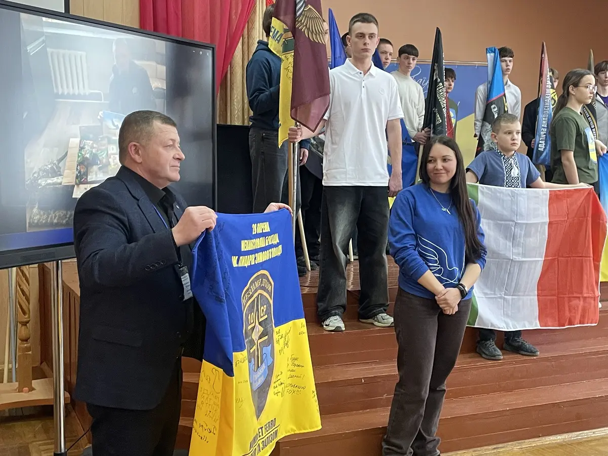 Йдеться, що понад 180 батьків ліцеїстів служать на різних напрямках. Біля закладу – пам’ятний знак із 43 іменами випускників, які загинули на війні.
