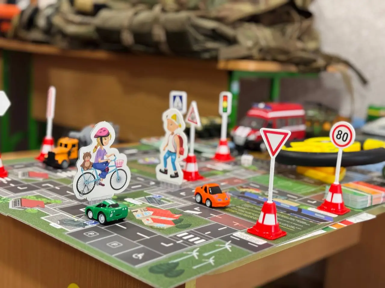 Окрім цього, для дітей створили тематичні зони з макетами, муляжами небезпечних предметів. Також для учнів моделюють знайомі для них ситуації: перехід дороги, поведінку біля транспорту, на зупинці та на вулиці.