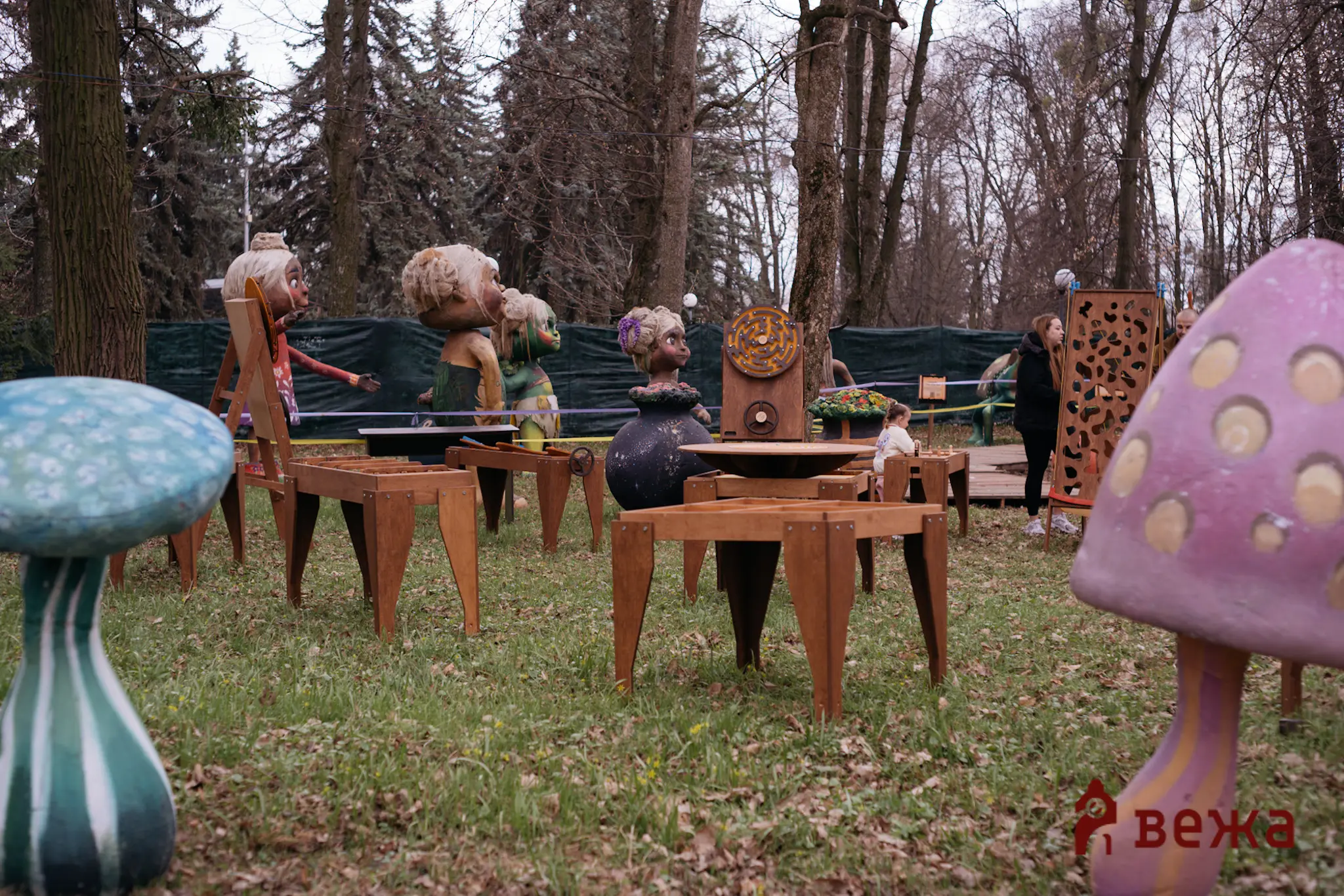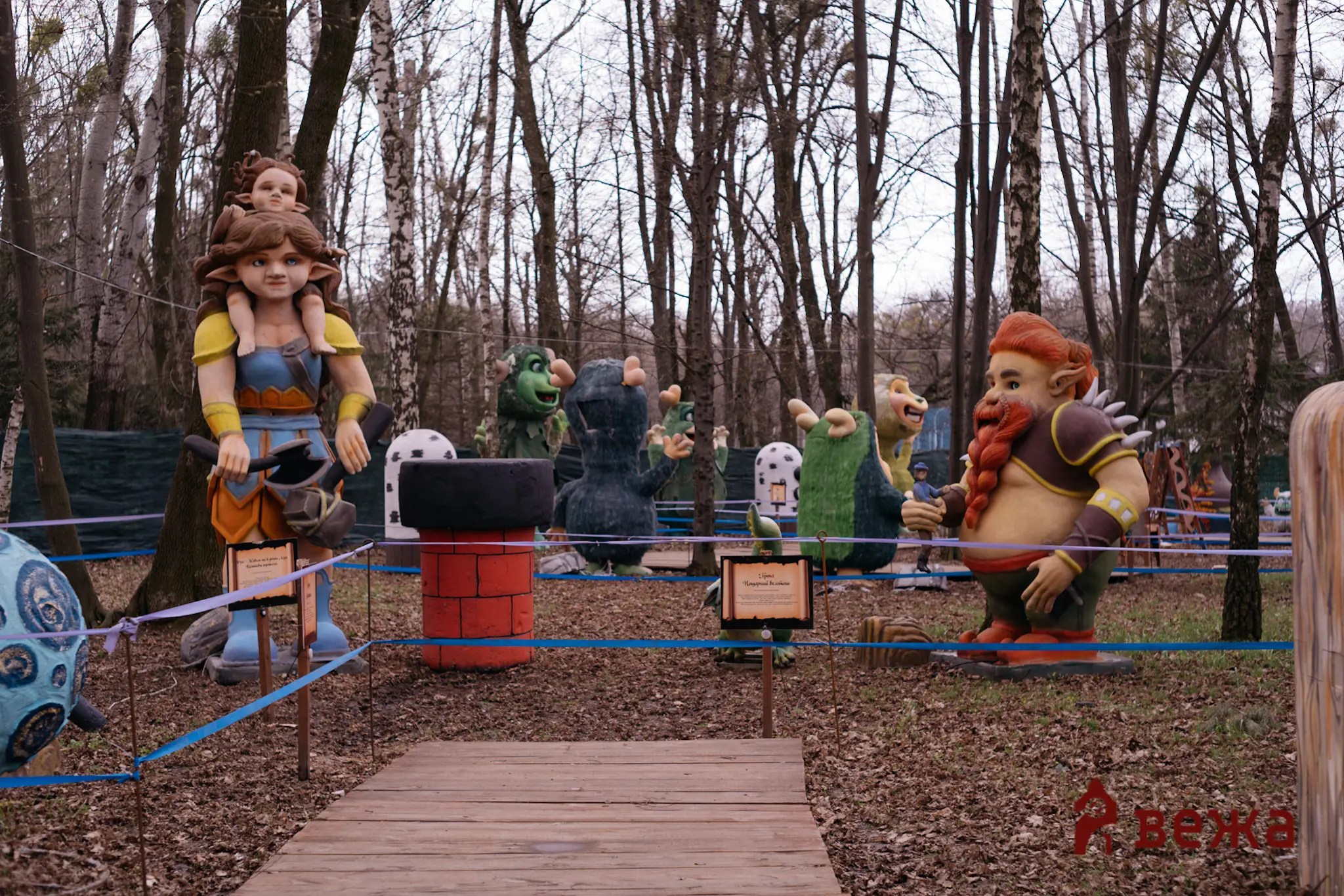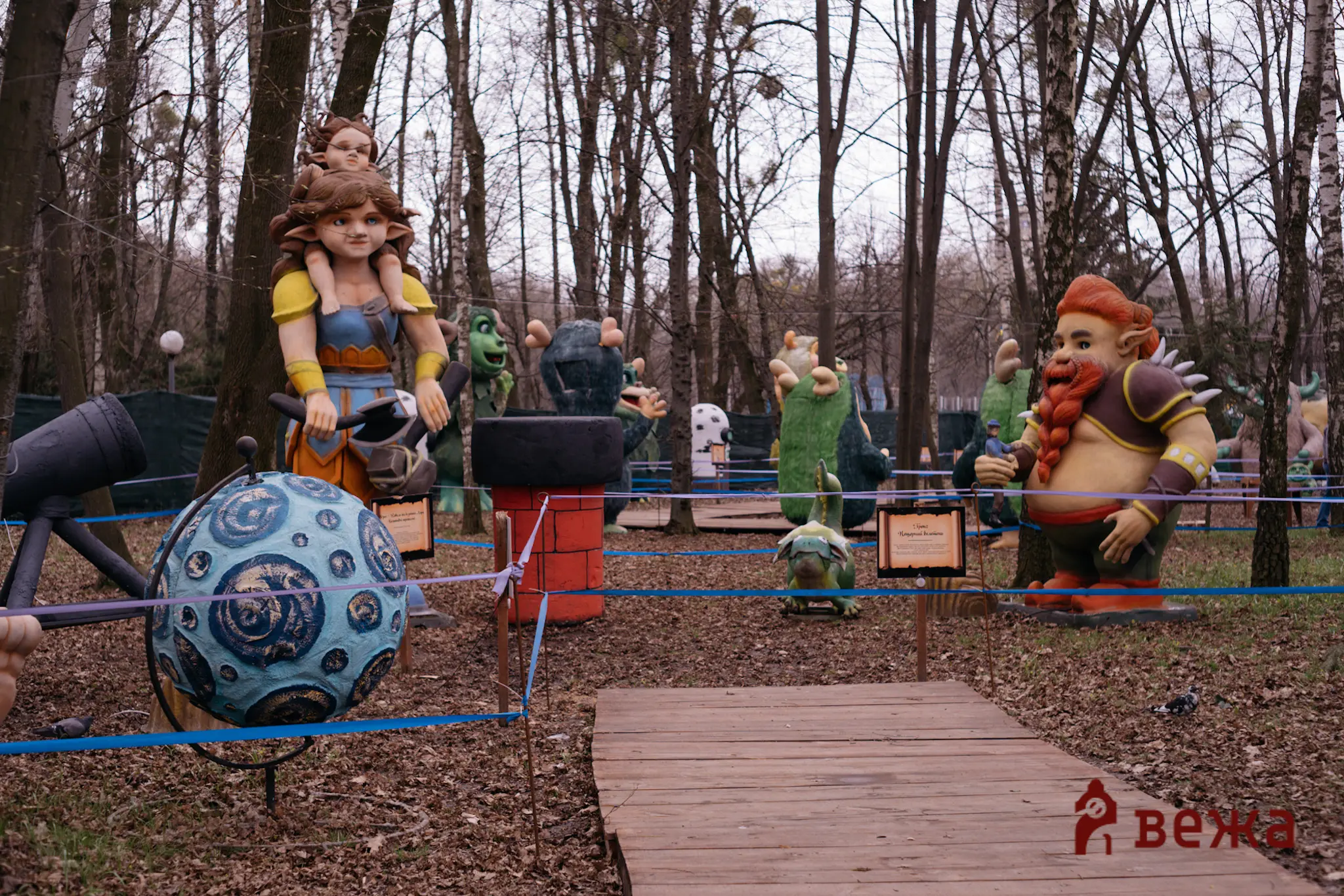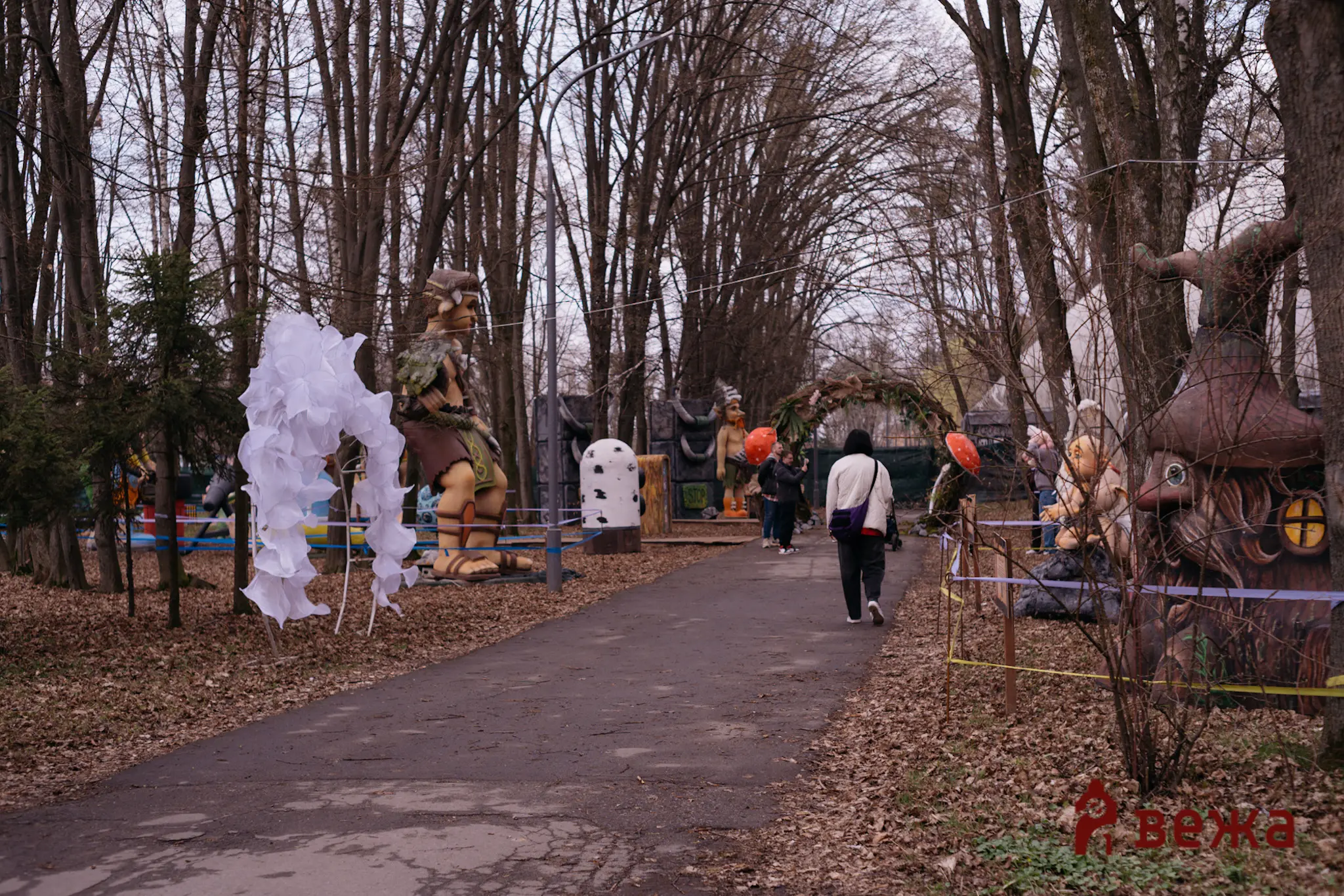 Попри робочий день, прохолодну та похмуру погоду, у парку було людно – сюди приходили родинами, з дітьми, аби першими побачити нову локацію. Атмосфера нагадувала справжній магічний ліс: серед дерев розмістилися велетні, тролі та інші фантастичні істоти, деякі з яких сягали до п’яти метрів заввишки.