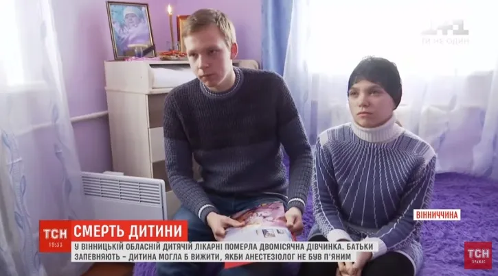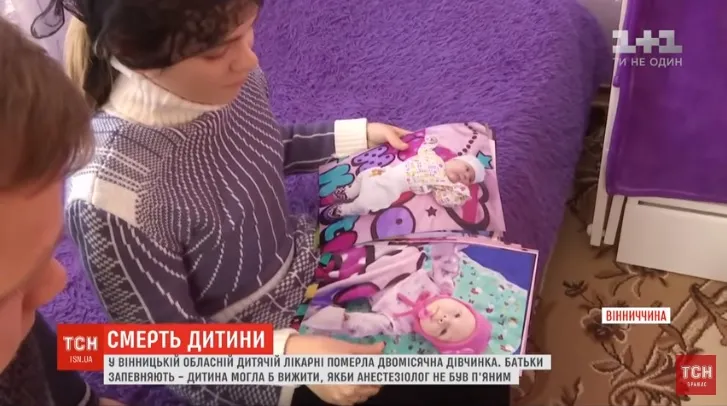 У Вінницькій обласній дитячій лікарні померла двомісячна Настя. На думку батьків, у смерті дитини винні лікарі, які постійно ставили неправильний діагноз, а в реанімації з дитиною був п’яний анестезіолог.