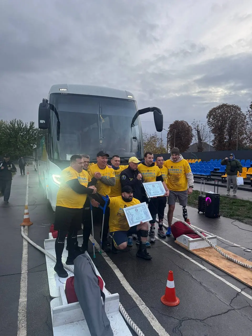Так, спортсмени протягнули два автобуси з пасажирами, загальна вага яких перевищила 36 тонн, а дистанція становила 16 метрів. Досягнення офіційно зафіксували представники Національного реєстру рекордів України.