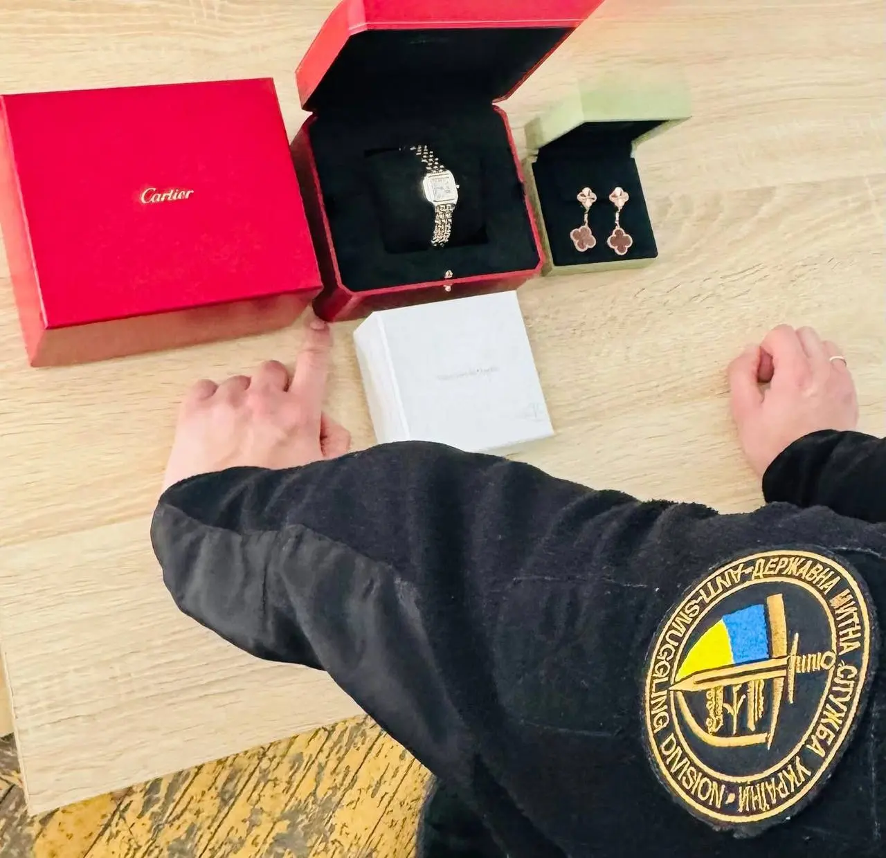 Втім, під час митного огляду в дорожніх валізах серед особистих речей інспектори виявили брендові ювелірні вироби, зокрема: