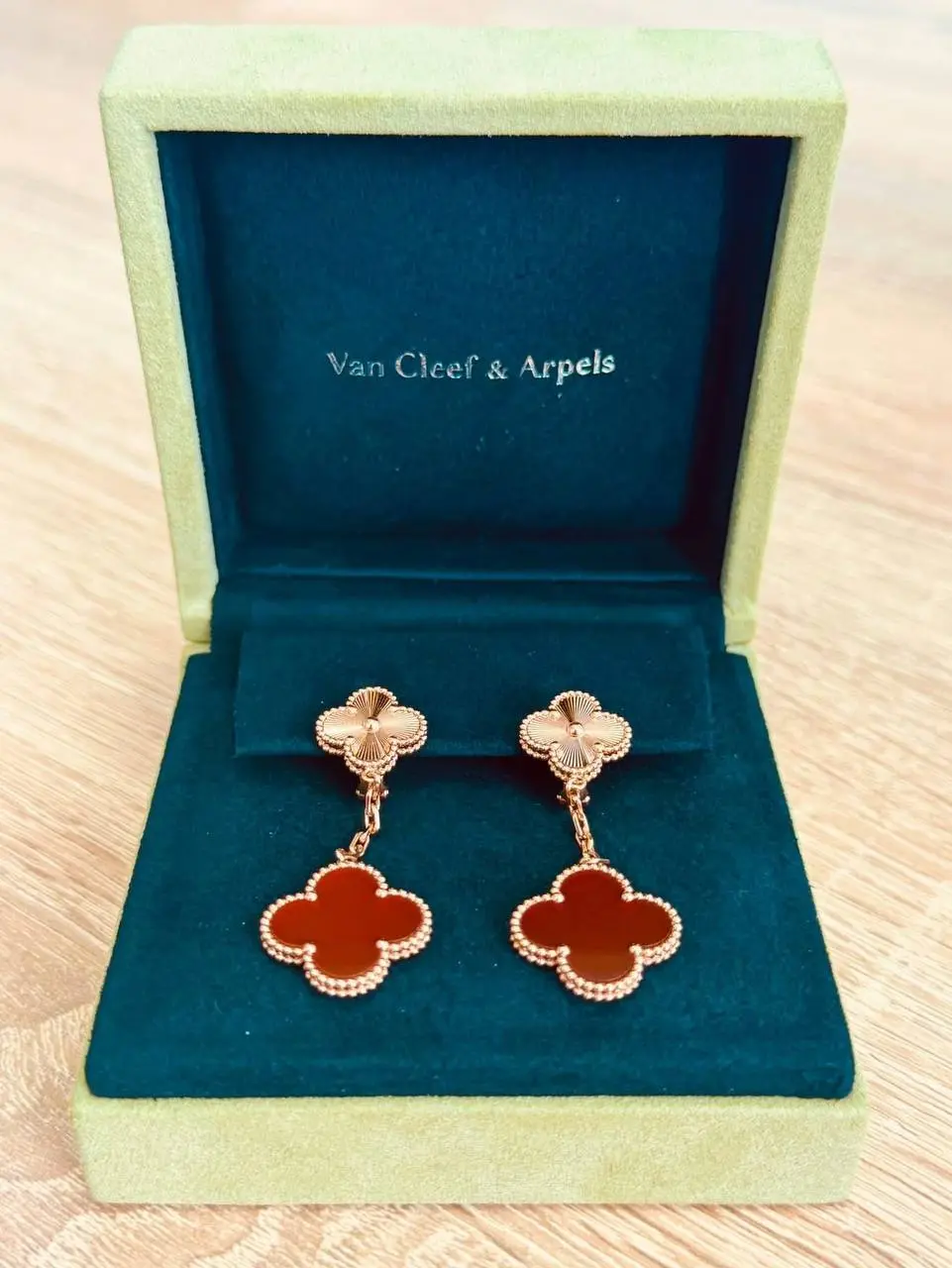 – сережки з металу жовтого кольору з камінням коричневого кольору з маркуванням «Van Cleef & Arpels», а також платіжний документ на суму 6300 євро;