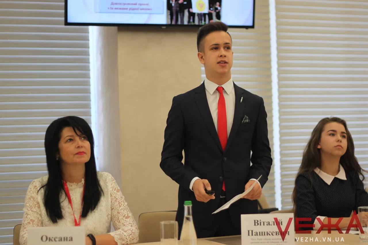 Зокрема із презентацією перед гостями виступили Віталій Пашкевич, заступник голови Ради лідерів молодіжного ГО “Союз старшокласників “Лідер”, а також Анастасія Галушко, члена міського громадського представництва уповноважених з прав дітей (дитячих омбудсменів). Обидва юні спікери розповіли представнику Дитячого фонду ООН Артему Айвазову про досягнення свої організацій, зокрема про проекти, які у Вінниці реалізовують діти для дітей.