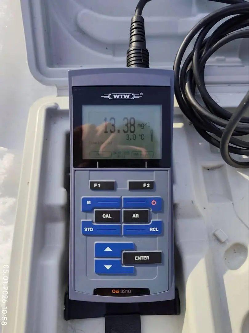 Попри те, що водне плесо частково вкрите кригою, кисневий режим у водоймі залишається задовільним. За результатами вимірювань, вміст розчиненого кисню у воді становить від 11 до 14 мг/дм³, що суттєво перевищує мінімально допустимий показник у 4 мг/дм³.
