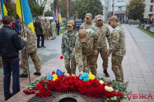 Сьогодні, за два дні до офіційного свята, міські чиновники, військові та духовенство вшанували пам’ять борців за Україну на честь Дня захисника України.